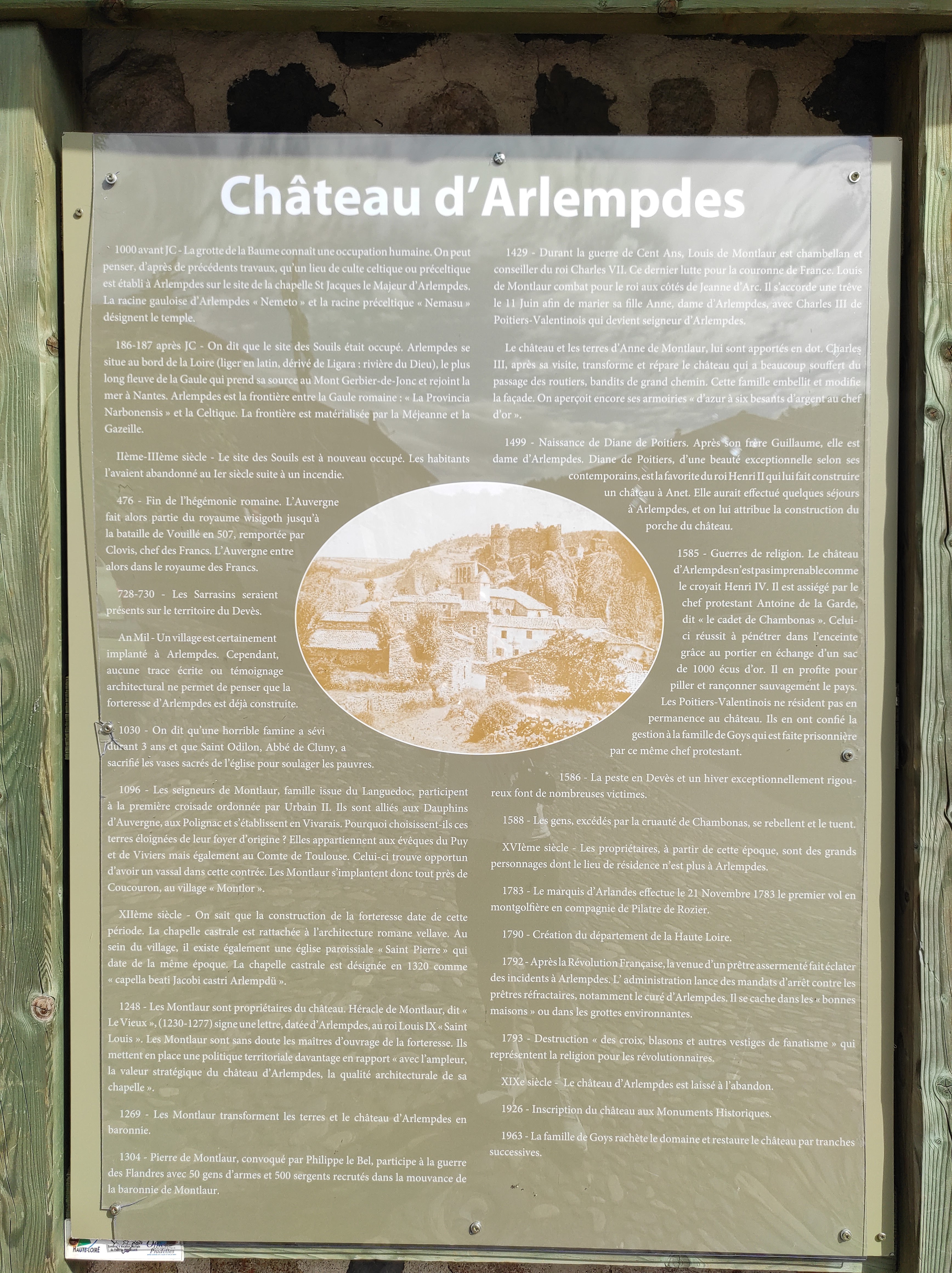 Le 1er château sur la Loire. Construit sur un dyke volcanique au pied duquel passe le fleuve un centaine de mètres en contrebas, le site d'Arlempdes est remarquable. Il a appartenu à de grandes familles de l'histoire de France car sa position de verrou entre plusieurs vallées lui a assuré une fonction stratégique essentielle. Un très beau site classée dans les plus beaux villages de France.