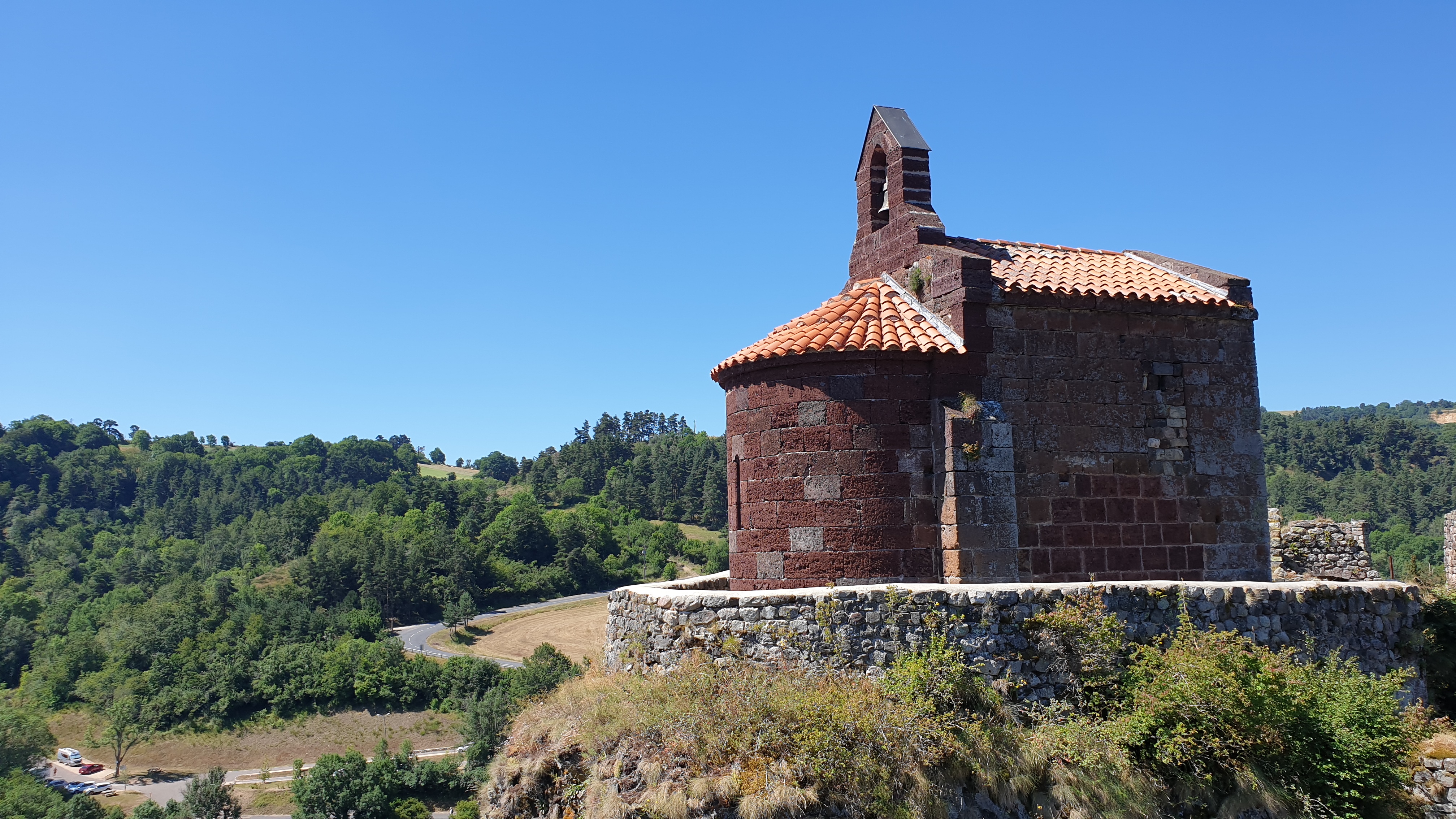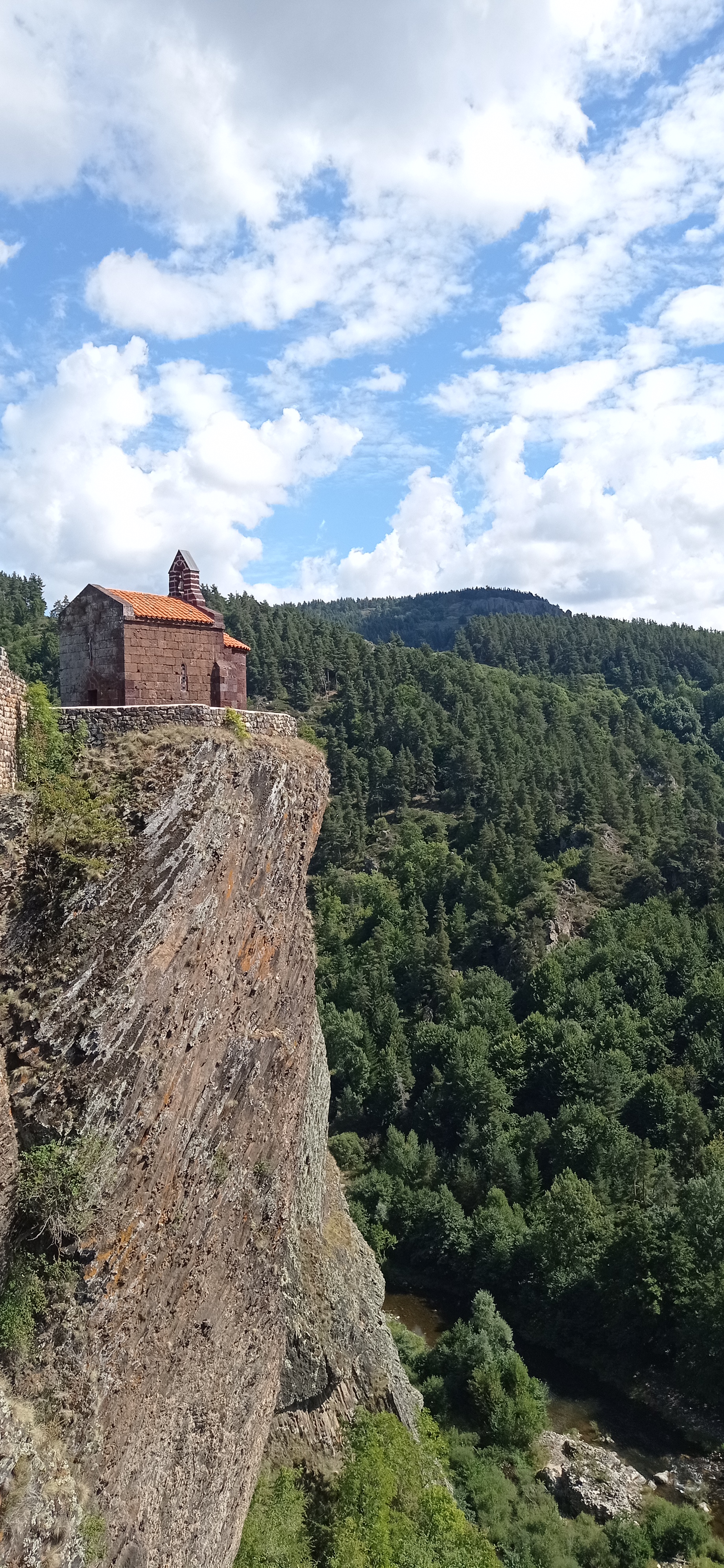 Magnifique site avec ce château monté sur un piton rocheux d'origine volcanique et la Loire encore naissance qui 100m plus bas serpente autour des coulées et orges balsamiques mais c'est cette minuscule chapelle St Jacques construite en pierres rouges qui attire le regard dès l'arrivée à Arlempdes. Parking gratuit, quelques euros pour la visite du château qui permettent à l'association d'entretenir ce site... En saison, visite toute les demies heures, billets à prendre au café restaurant du village.