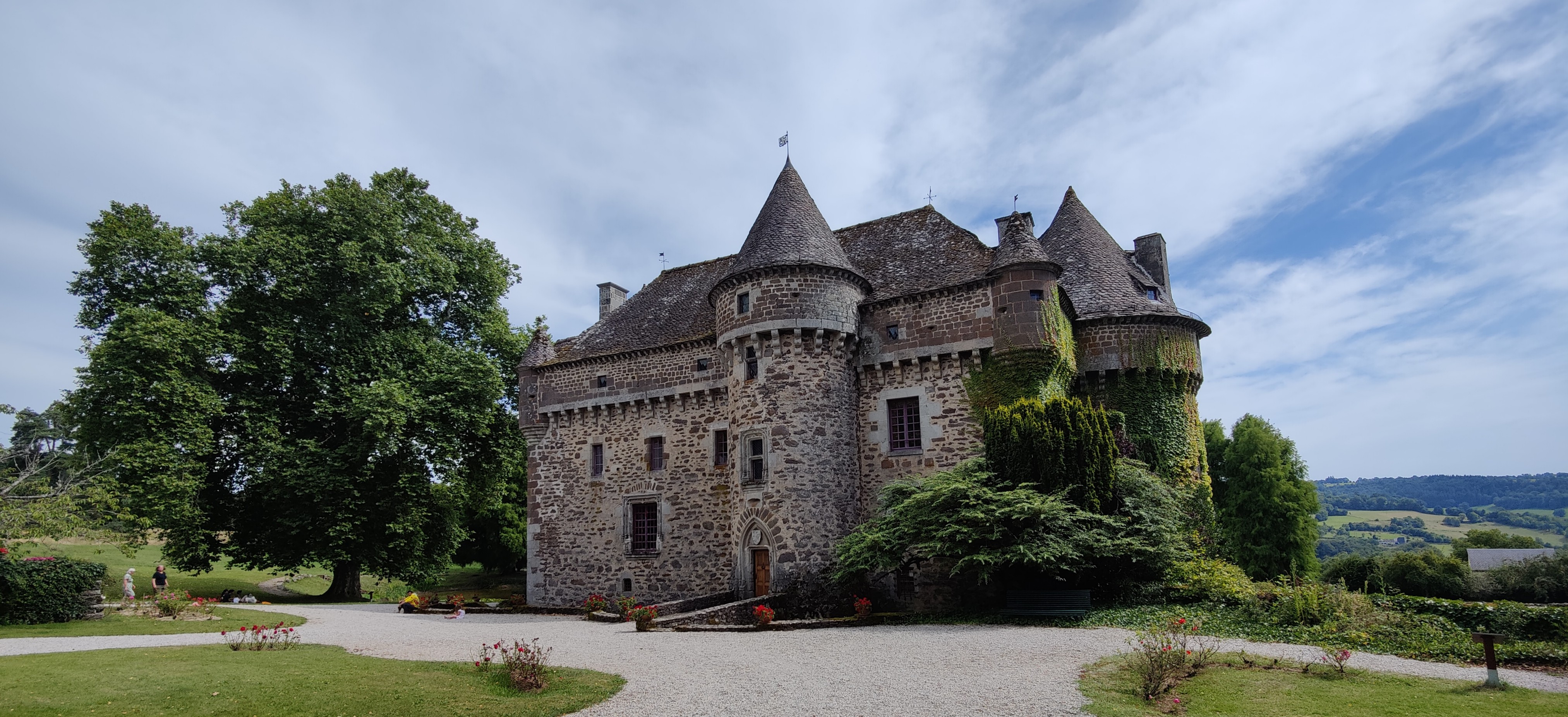 Superbe chateau avec un très grand parc donnant un panorama sur les monts du Cantal. La guide est très sympa et connait très bien l'histoire du château. Je l'ai fait en famille et je recommande.