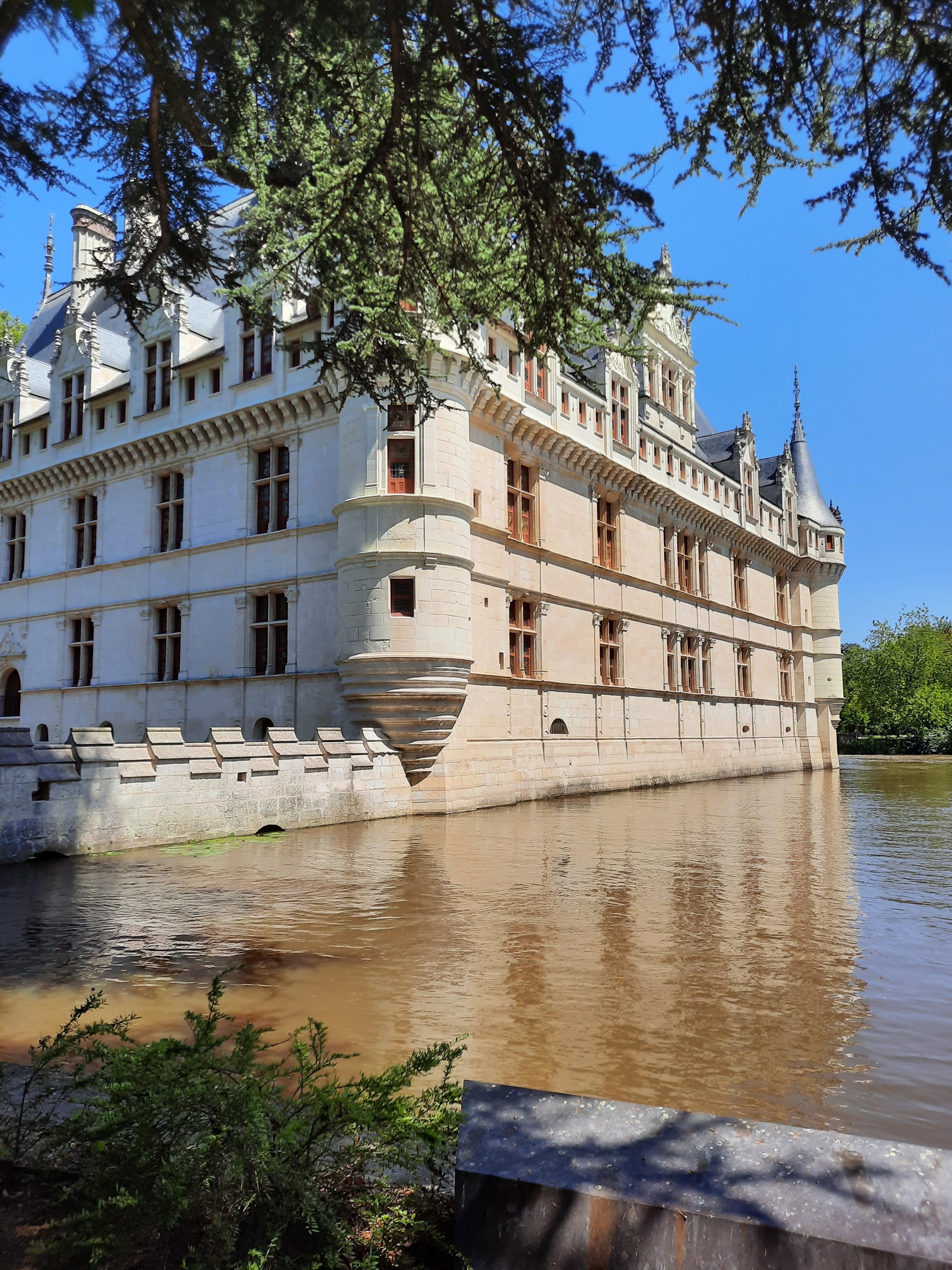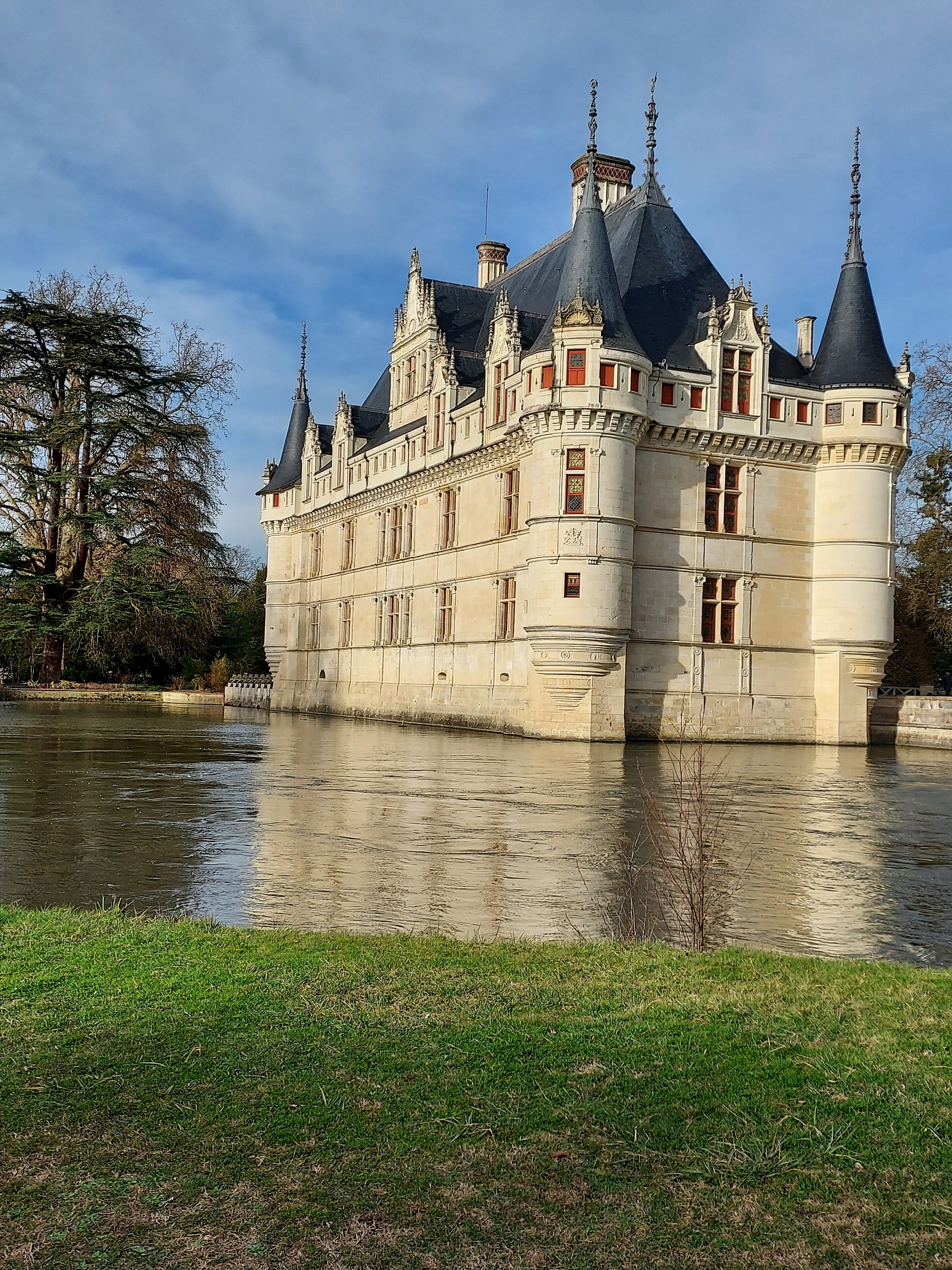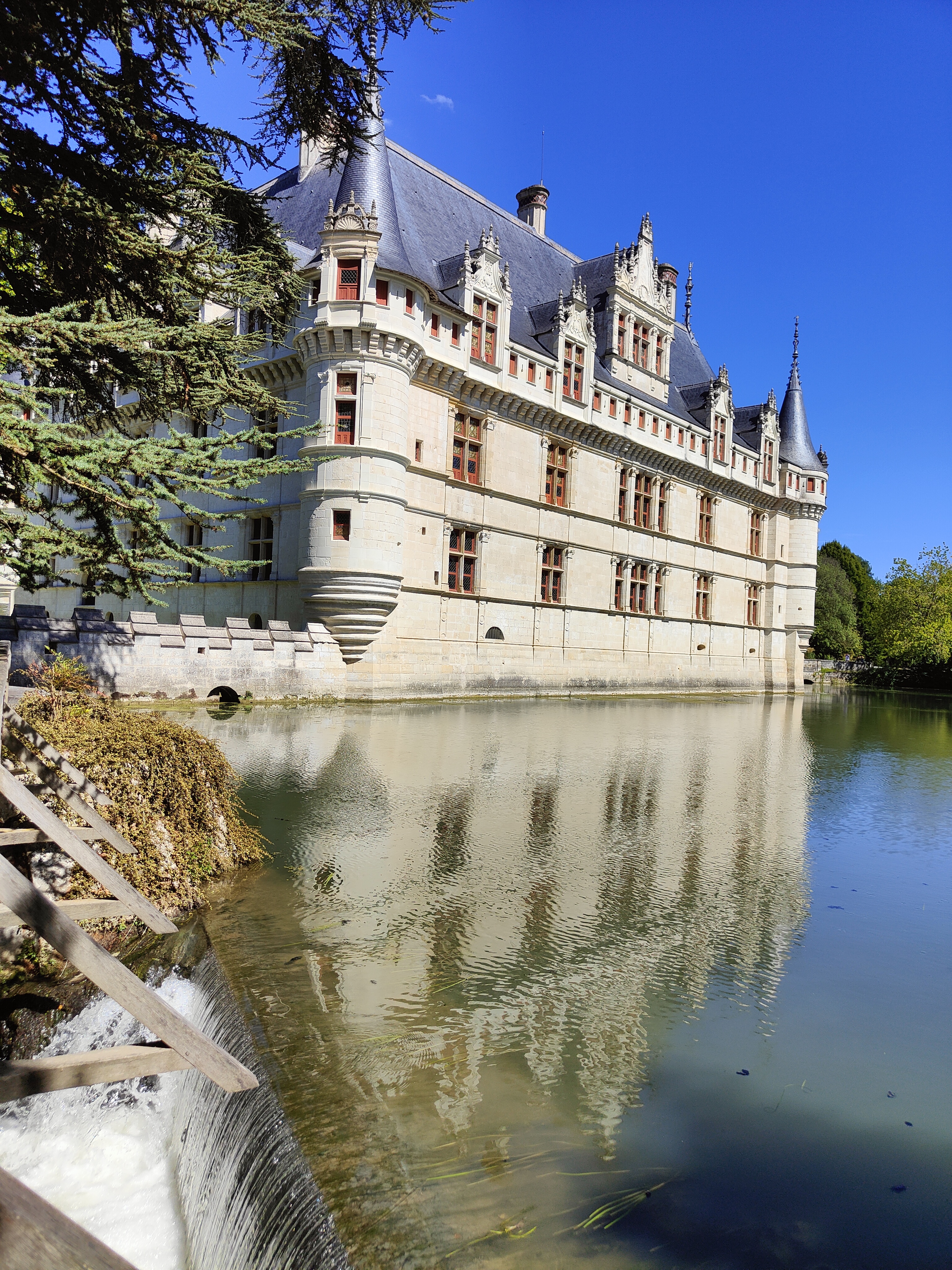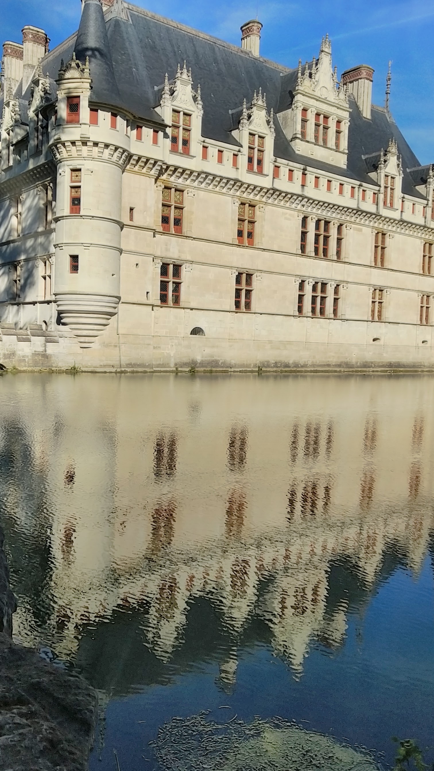 Nous avons récemment visité avec mon ami le château d'Azay-le-Rideau que je souhaitais voir depuis tant d'années. Nous avons commencé par une promenade en extérieur pour nous imprégner de l'atmosphère poétique du lieu. Même si je l'avais déjà vu en photos, ça ne m'a pas empêché d'être subjugué par ce petit joyau architectural qui se reflète sur son miroir d'eau tout en étant entouré par un beau parc à l'anglaise. La visite de l'intérieur commence de manière originale au sommet de l'édifice pour admirer l'immense charpente d'origine en chêne. Ensuite, on a déambulé dans une succession de pièces richement meublées. A la fin de cette visite inoubliable, je vous recommande de faire une pause désaltérante à la buvette pour profiter une dernière fois de la vue sur ce château féerique.