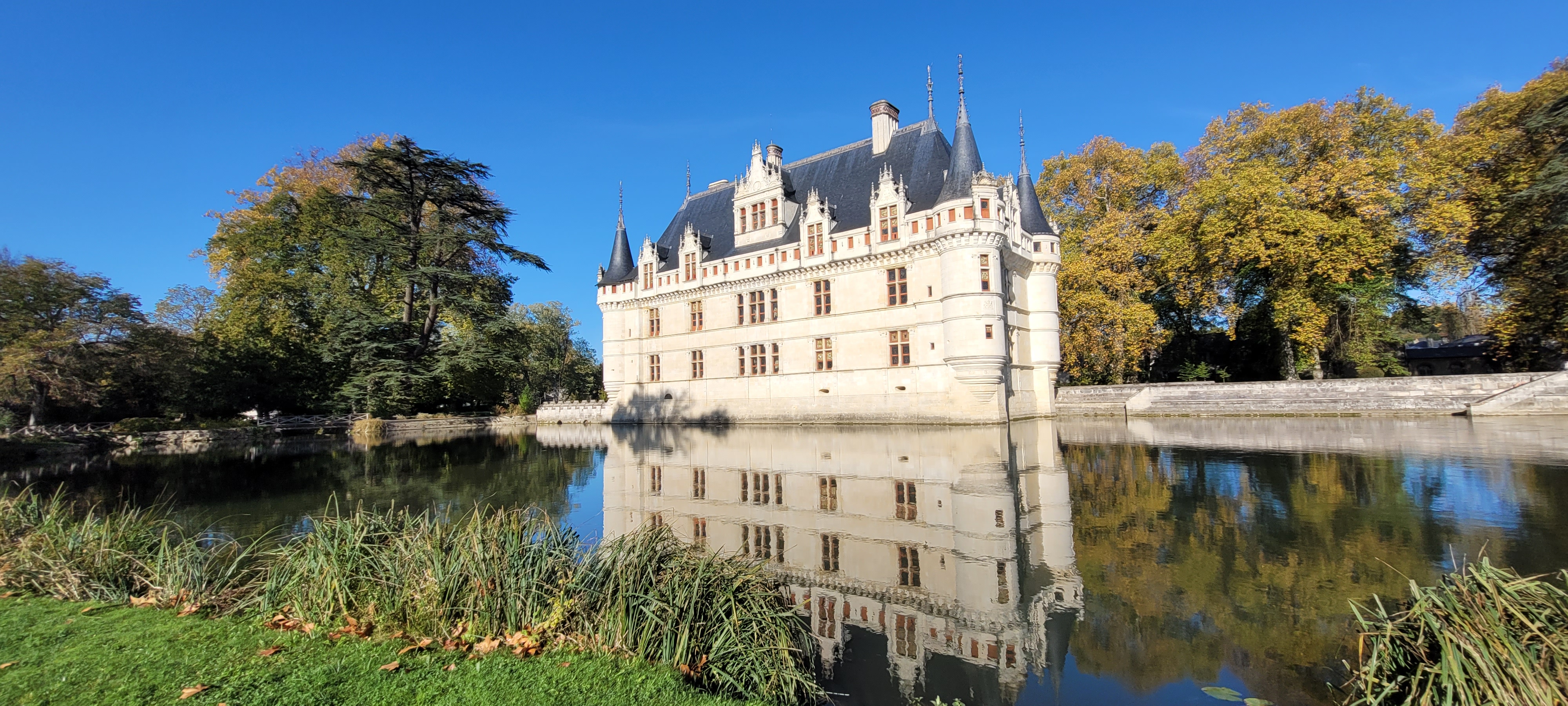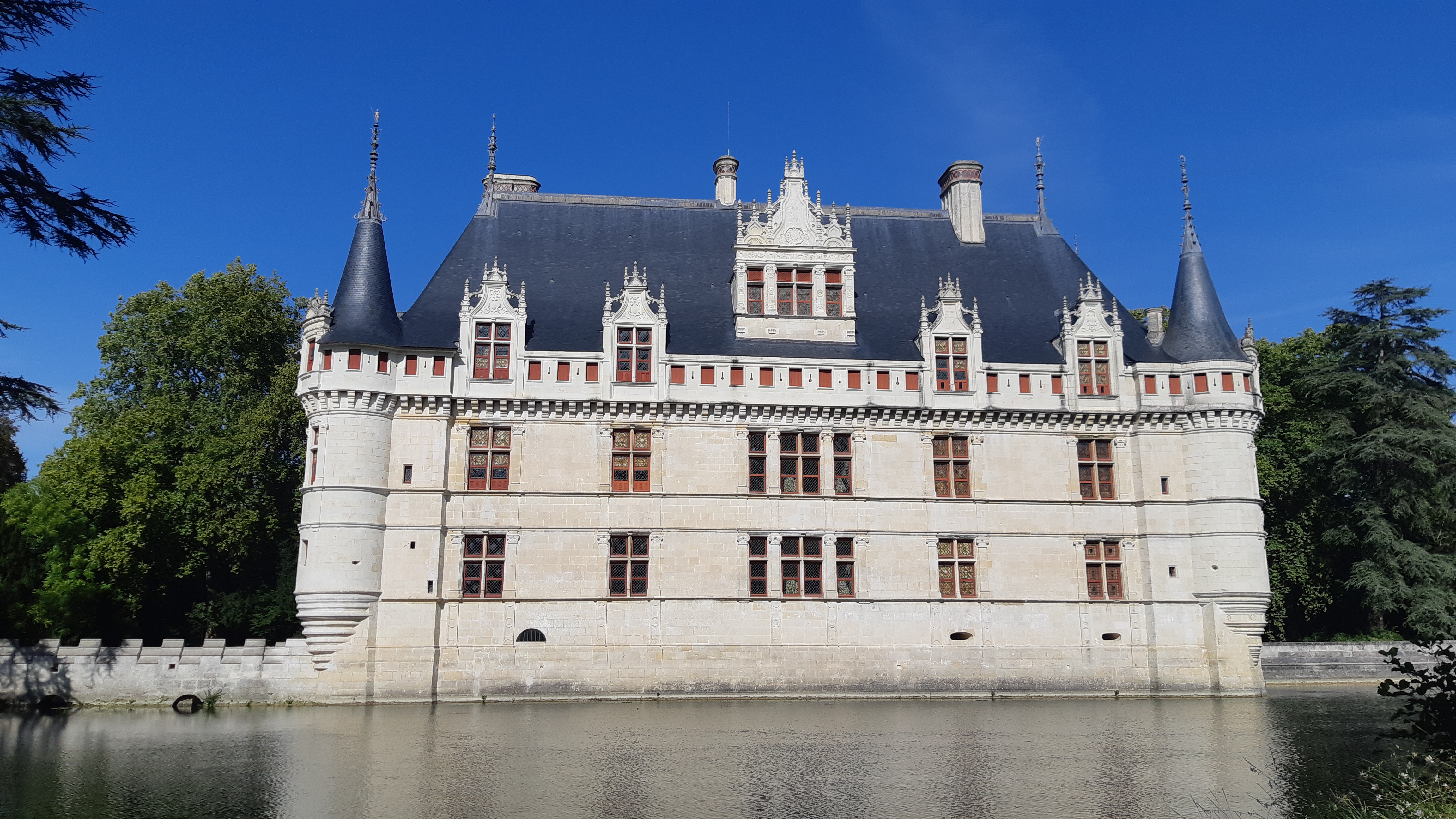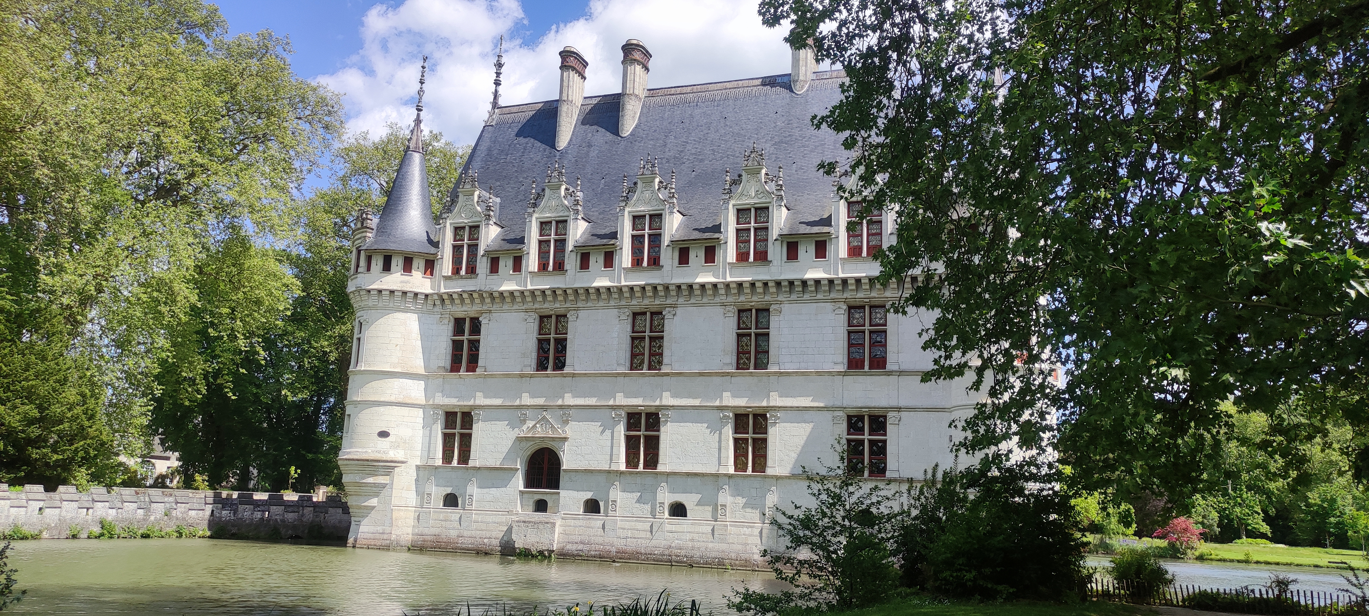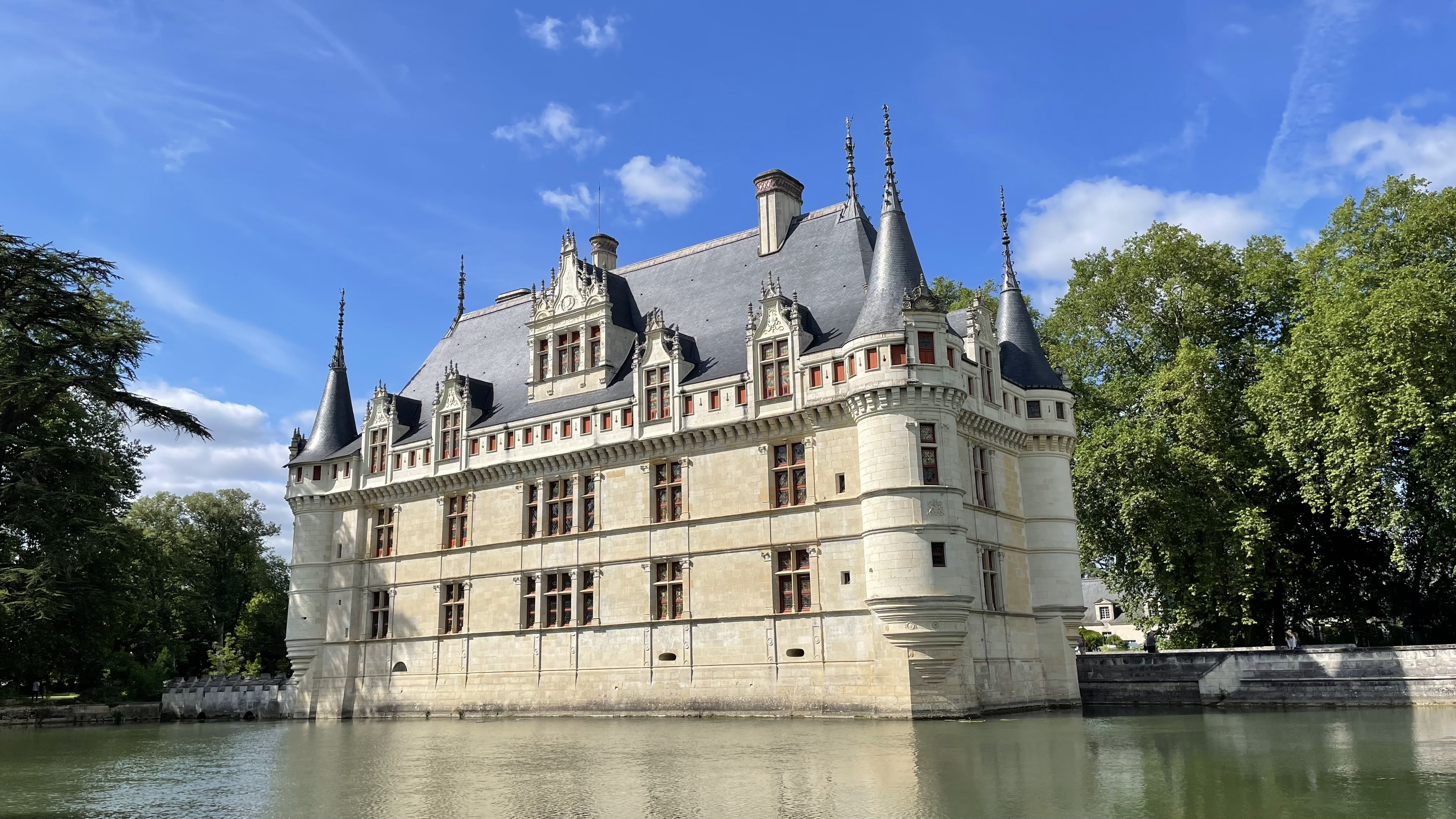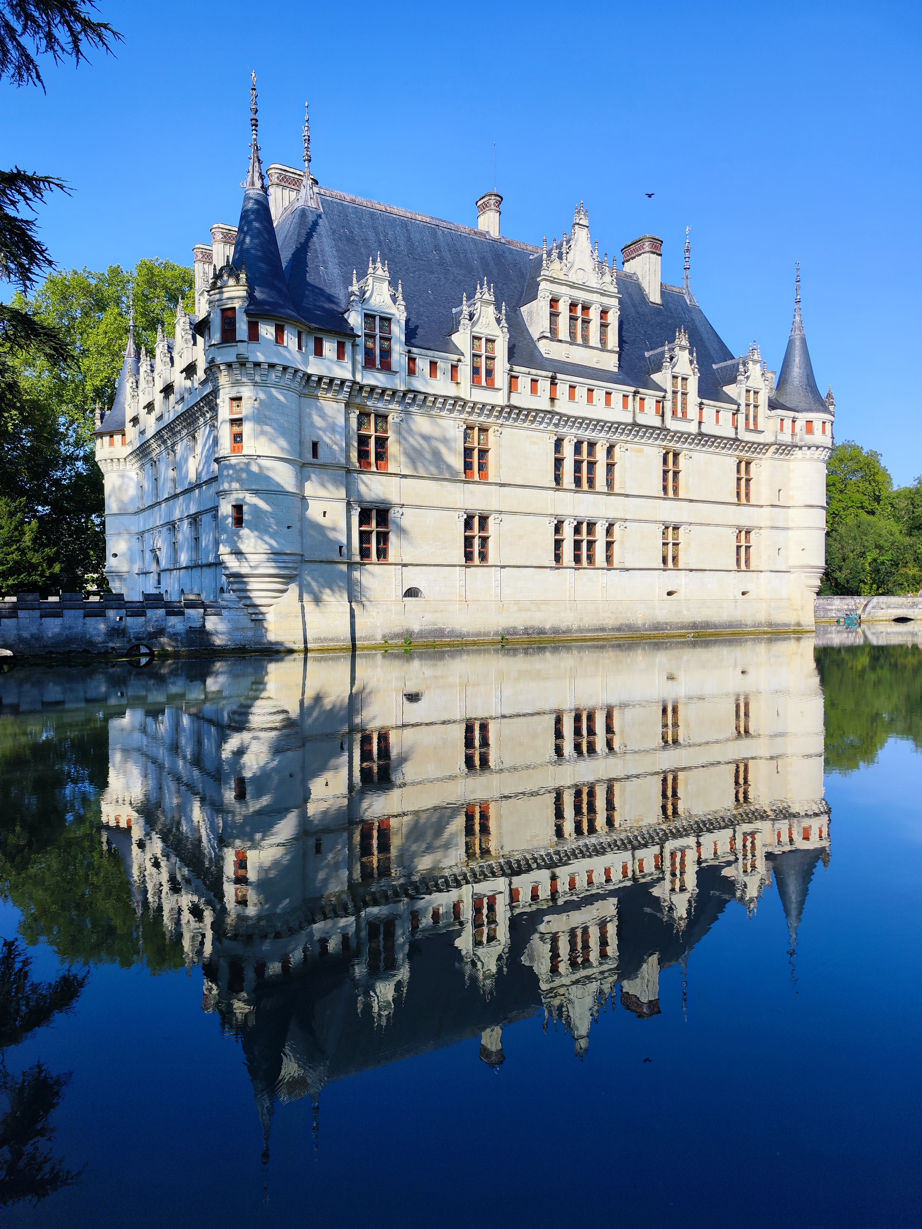 Nous avons récemment visité avec mon ami le château d'Azay-le-Rideau que je souhaitais voir depuis tant d'années. Nous avons commencé par une promenade en extérieur pour nous imprégner de l'atmosphère poétique du lieu. Même si je l'avais déjà vu en photos, ça ne m'a pas empêché d'être subjugué par ce petit joyau architectural qui se reflète sur son miroir d'eau tout en étant entouré par un beau parc à l'anglaise. La visite de l'intérieur commence de manière originale au sommet de l'édifice pour admirer l'immense charpente d'origine en chêne. Ensuite, on a déambulé dans une succession de pièces richement meublées. A la fin de cette visite inoubliable, je vous recommande de faire une pause désaltérante à la buvette pour profiter une dernière fois de la vue sur ce château féerique.