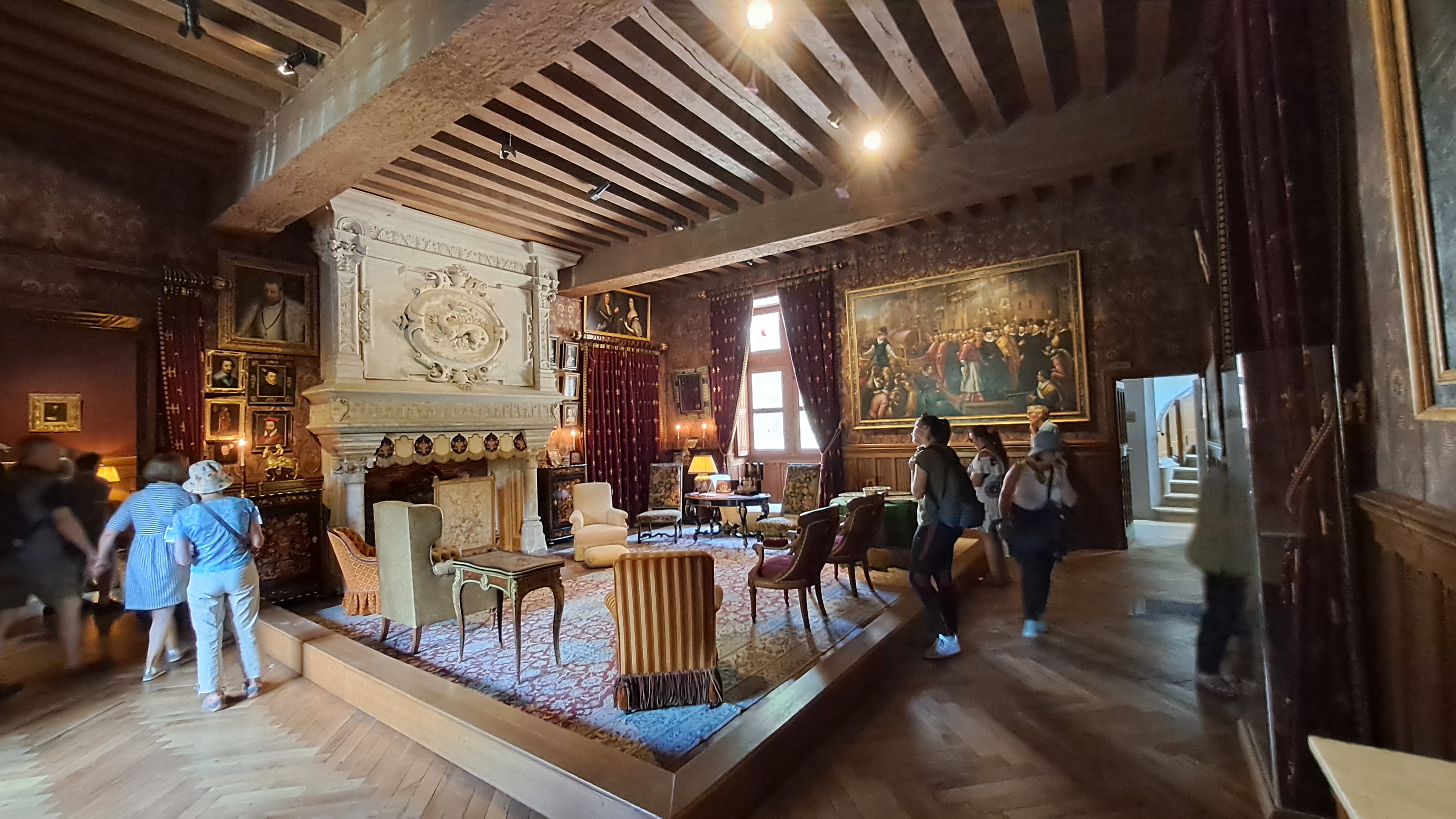Une visite en famille (adultes, ado et jeunes enfants). Nous avons tous d'abord admiré l'architecture, les ornements gravés dans la pierre ( un vrai plaisir pour la vue) cette escalier en vue central qui est ouvert sur l'extérieur. Nous avons profité d'une visite guidée et cela nous a permis de comprendre l'histoire de ce château et de découvrir ses petits secrets. Je la recommande. Malheureusement le temps ne nous a pas permis de découvrir l'extérieur. Pour mes plus jeunes enfants, ils n'y ont pas trouvé d'attractivité donc cela n'est pas adapté. Il peut-être intéressant de trouver une histoire qui pourrait les captiver grâce à un visuel ludique lors de la visite. A réfléchir. Mais je recommande cette visite aux adultes et ado appréciant l'architecture ( la charpente est magnifique) et l'histoire de France.