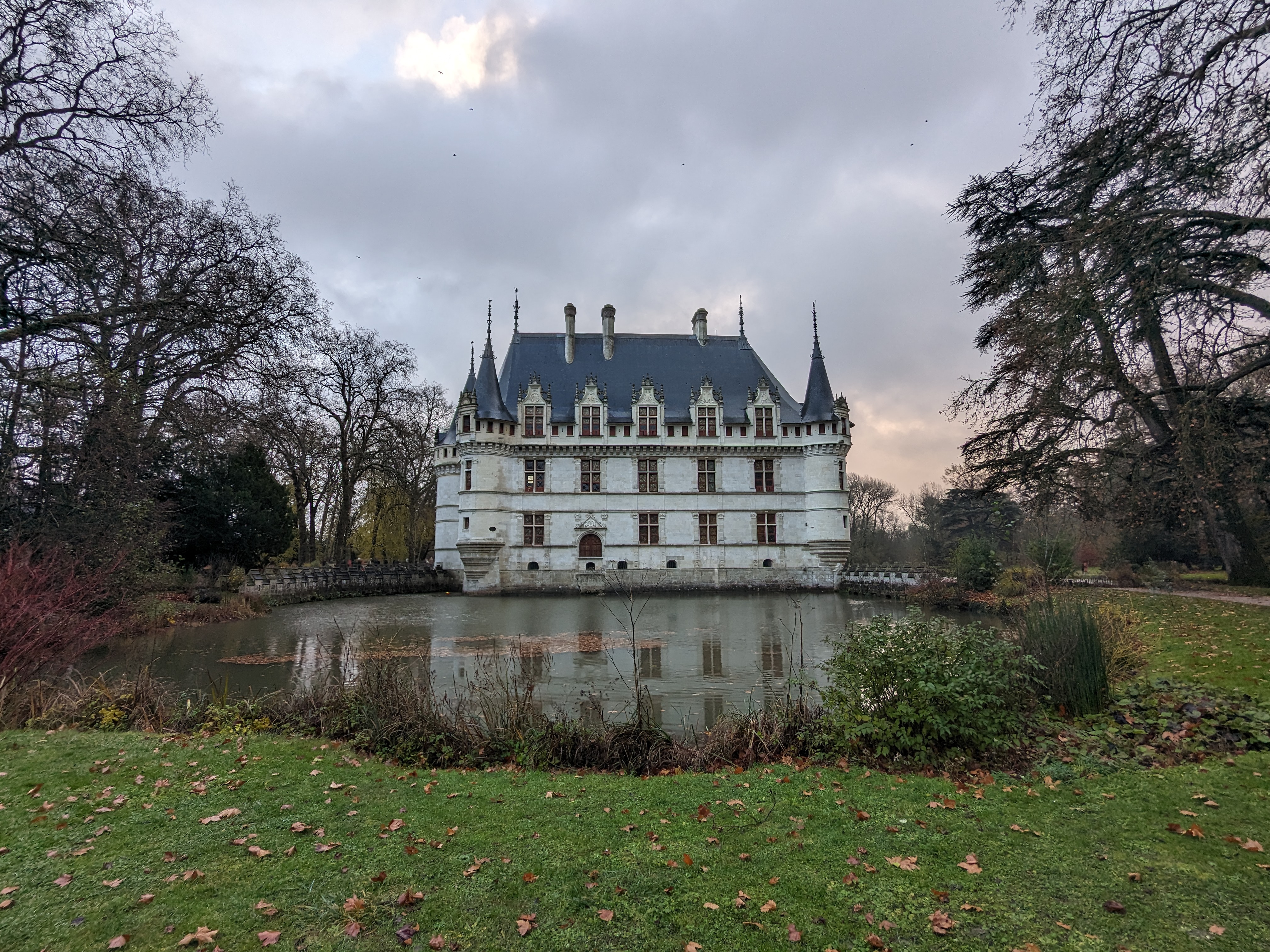 Beau château avec une superbe charpente et de belles pièces. Le miroir d eau permet de belles photos Parc agréable
