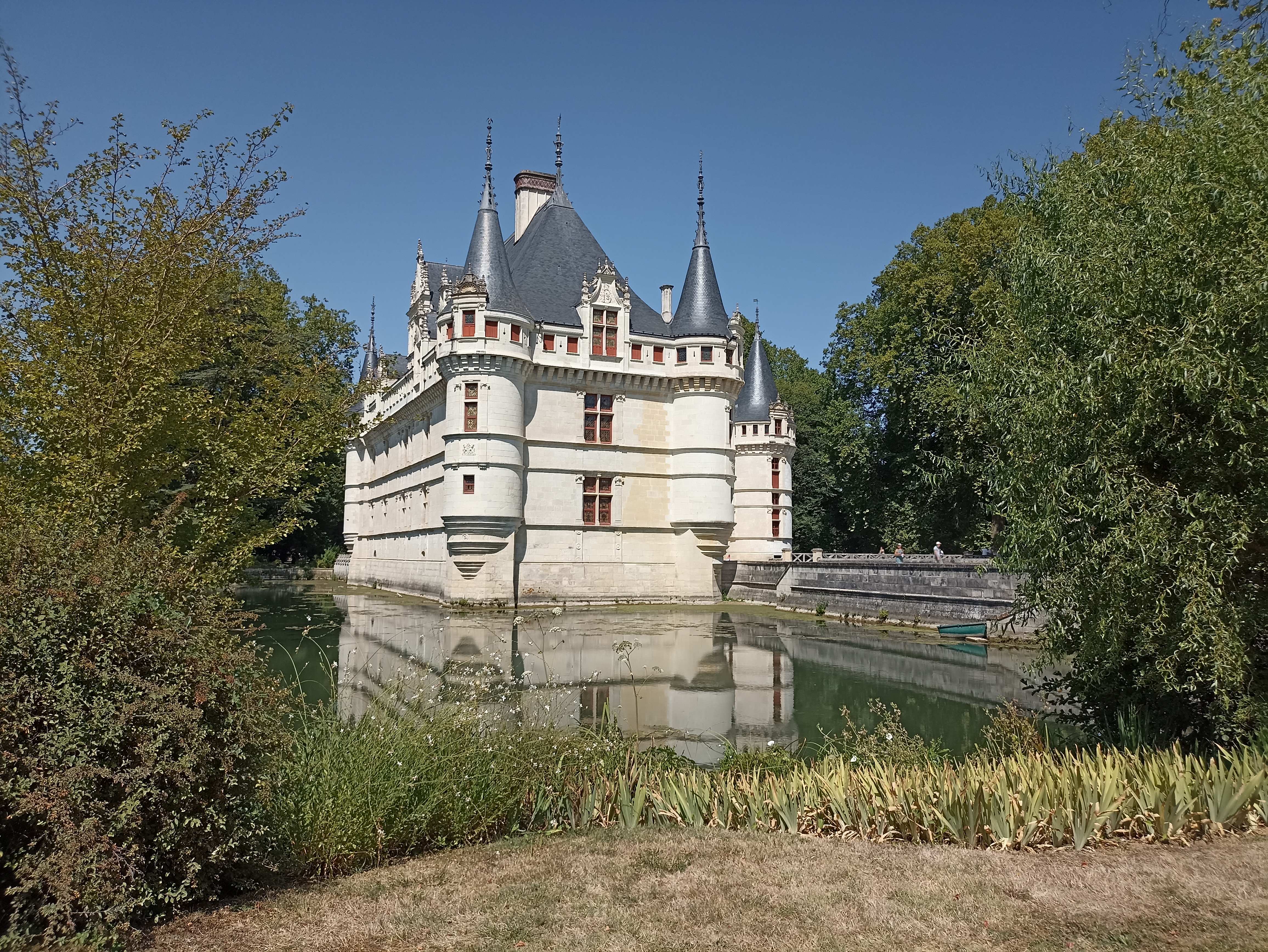 Beau château, de dimensions assez modestes, célèbre pour ses reflets que l'on peut admirer dans les douves, et entouré de son jardin verdoyant et reposant. Je ne recommande pas la visite en cas de forte affluence car il faut emprunter des escaliers et des couloirs étroits et la visite des pièces devient vite pénible quand la vue est bloquée. J'ai regretté le manque de panneaux apportant des précisions sur la décoration (pour ceux sans audioguide) et la présence de barrières empêchant la libre circulation au sein des pièces. Déception par rapport à la description de ce château comme d'un « incontournable » parmi les châteaux de la Loire à visiter. D'autres châteaux m'ont laissé une bien plus forte impression, celui-ci ne m'a pas subjugué.