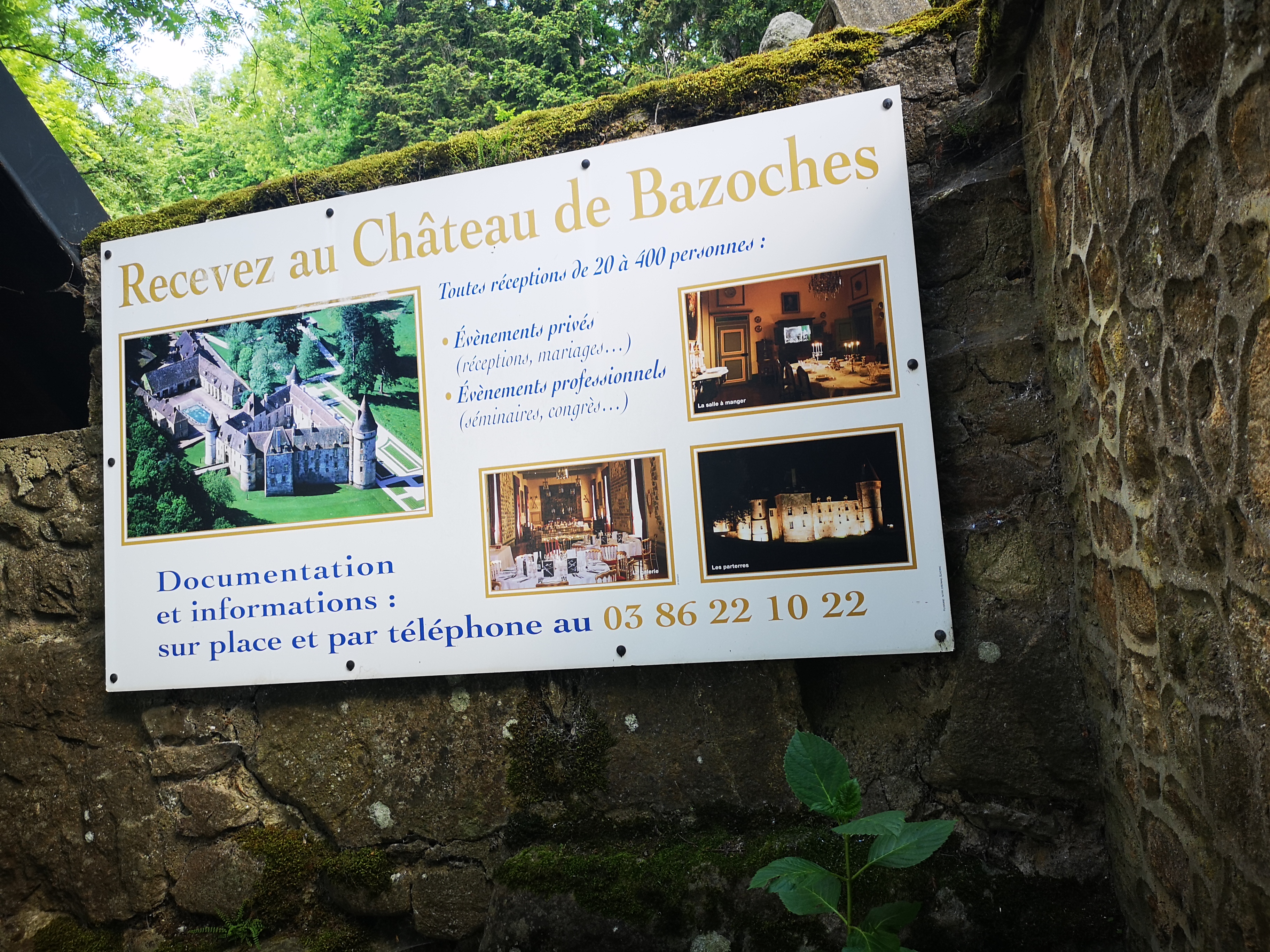 Cela fait plus de 3 heures que je tente de contacter le château afin de connaître la situation. J'ai appelé, envoyé des messages, rien. Pas de réponse sur le facebook, je n'ai même pas eu de réponse à la question sauriez-vous s'il y a des visites du château par beau temps ? (ce qui serait logique puisque le château ne fermera que lorsqu'il y aura des averses). La seule chose que j'ai eu, ce sont des messages de modération sur Facebook qui m'indiquent que l'adresse que j'ai donné n'est pas celle du château de Bazoches (c'est pourtant celle donnée sur votre site, ce qui est confirmé par la page Wikipédia du château). En gros je cherche des informations qui me permettrait de visiter le château (horaires, prix...)