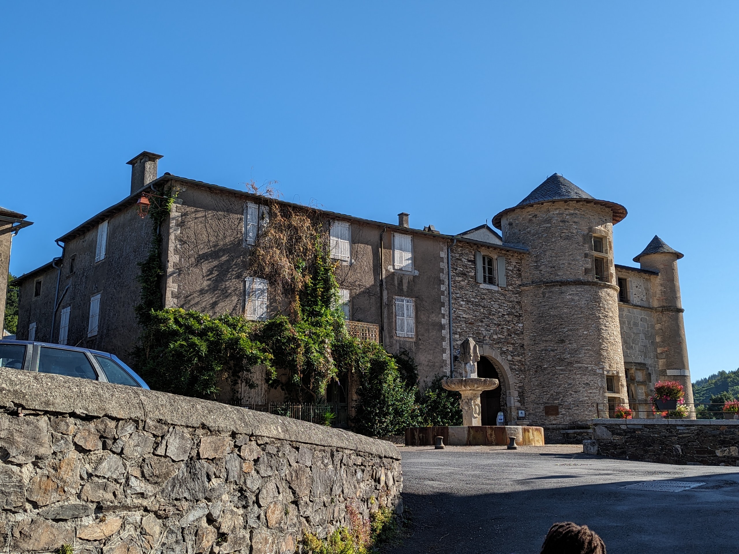 Château fermé c 'est vraiment dommage qu'au mois de septembre et même au mois d'octobre les monuments ne soient pas ouverts comme en juillet et août . Le château a été remanié la partie arrière est défigurée. Sur la place la fontaine est magnifique Village désertique ....