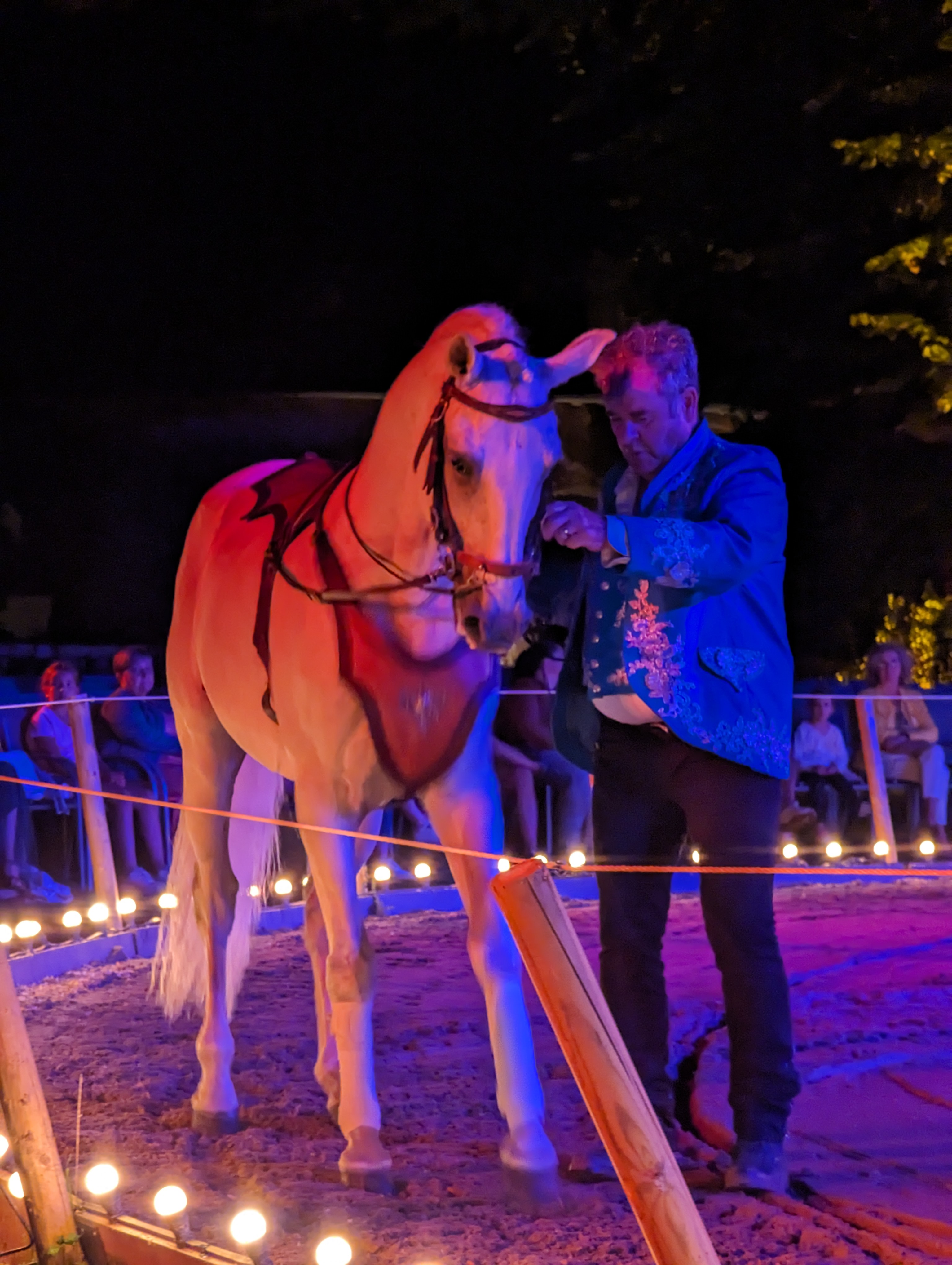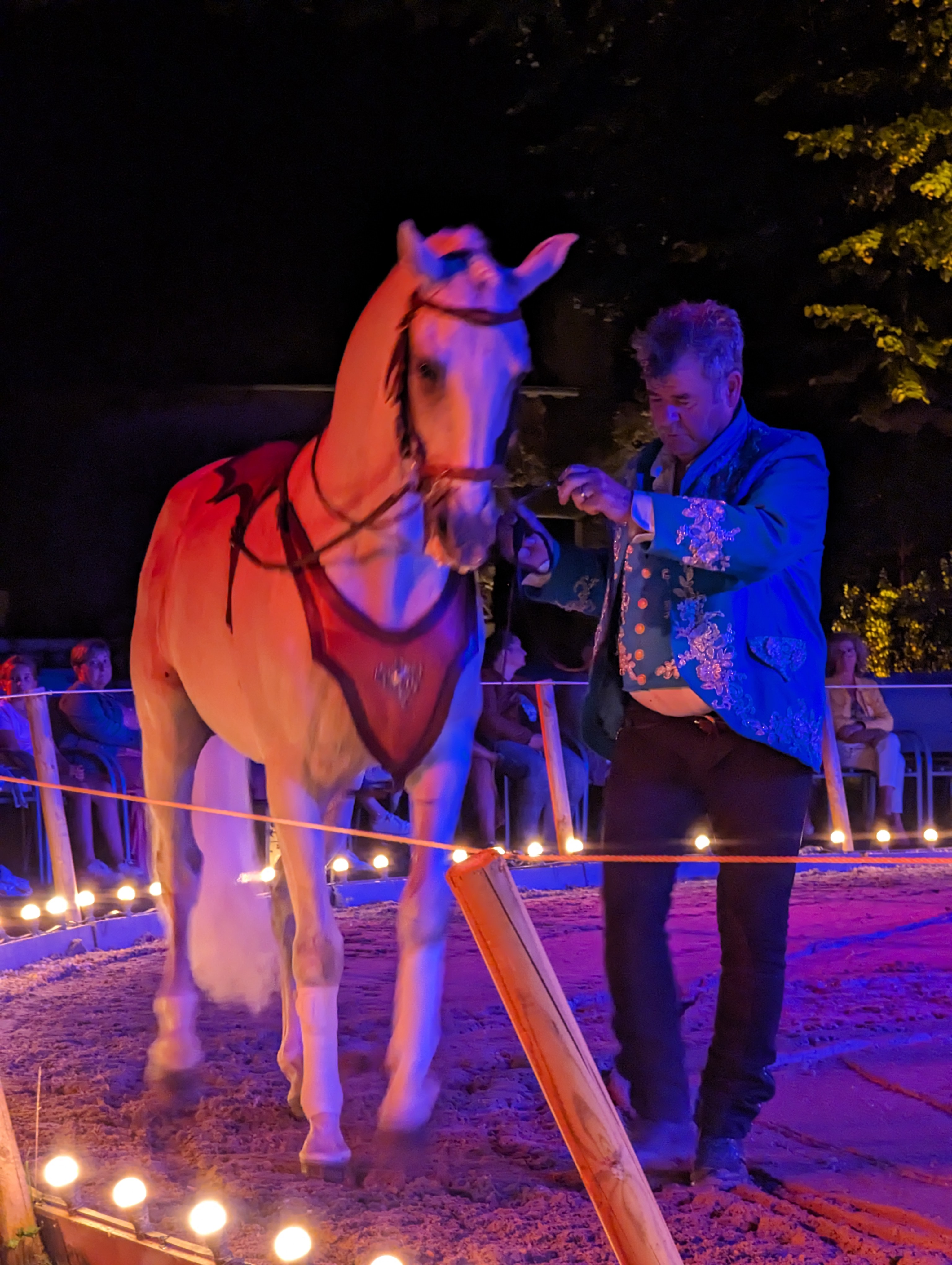 Très beau château et spectacle équestre hasta luego d 1 grande qualité due au travail des artistes Excellente soirée Cordialement