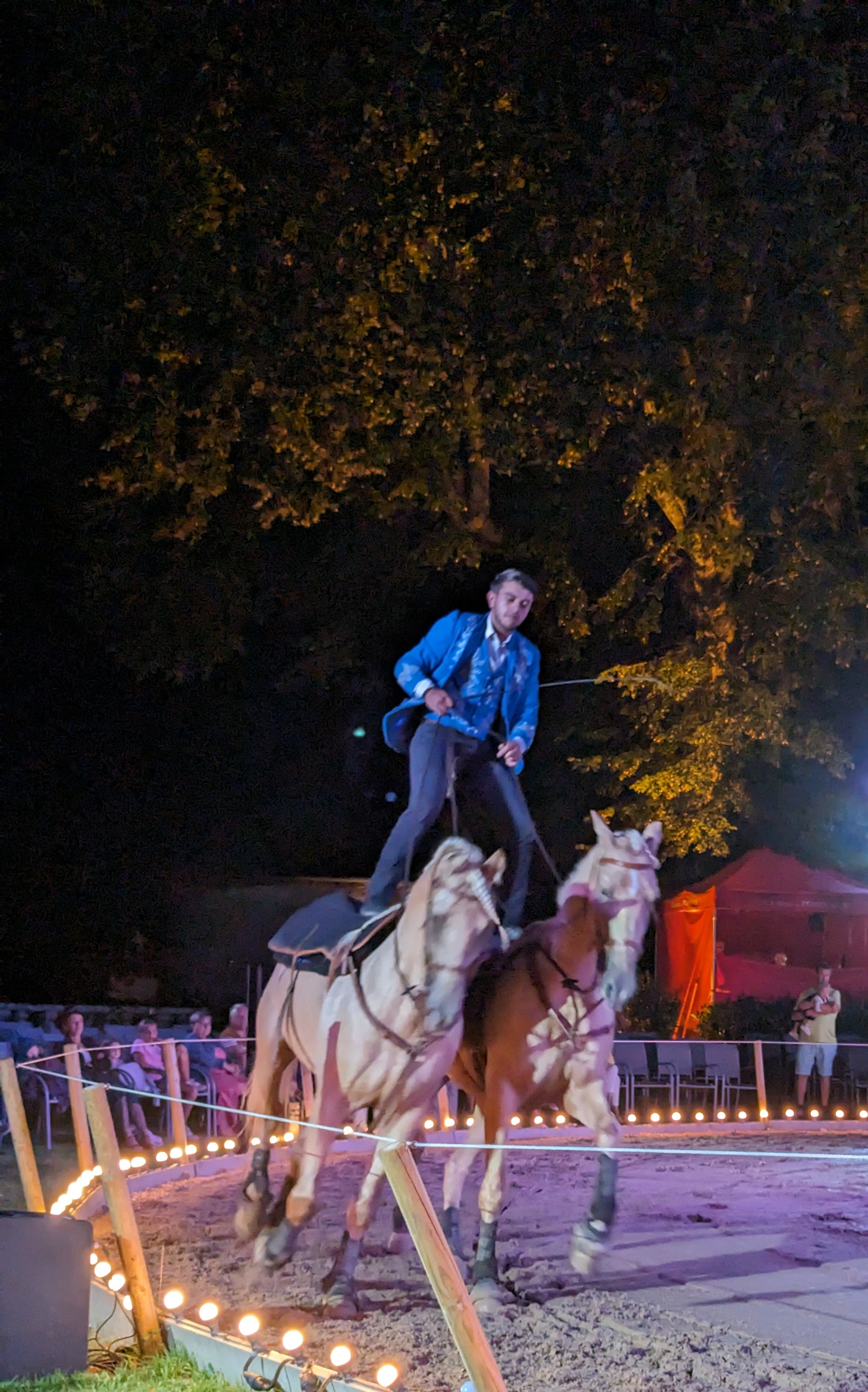 FORMIDABLE nous avons passez deux jours pour les spectacles nocturnes féerique très bonne ambiance bonne organisation et qualité de la troupe ainsi que les bénévoles et surtout le spectacle de dressage haute voltige