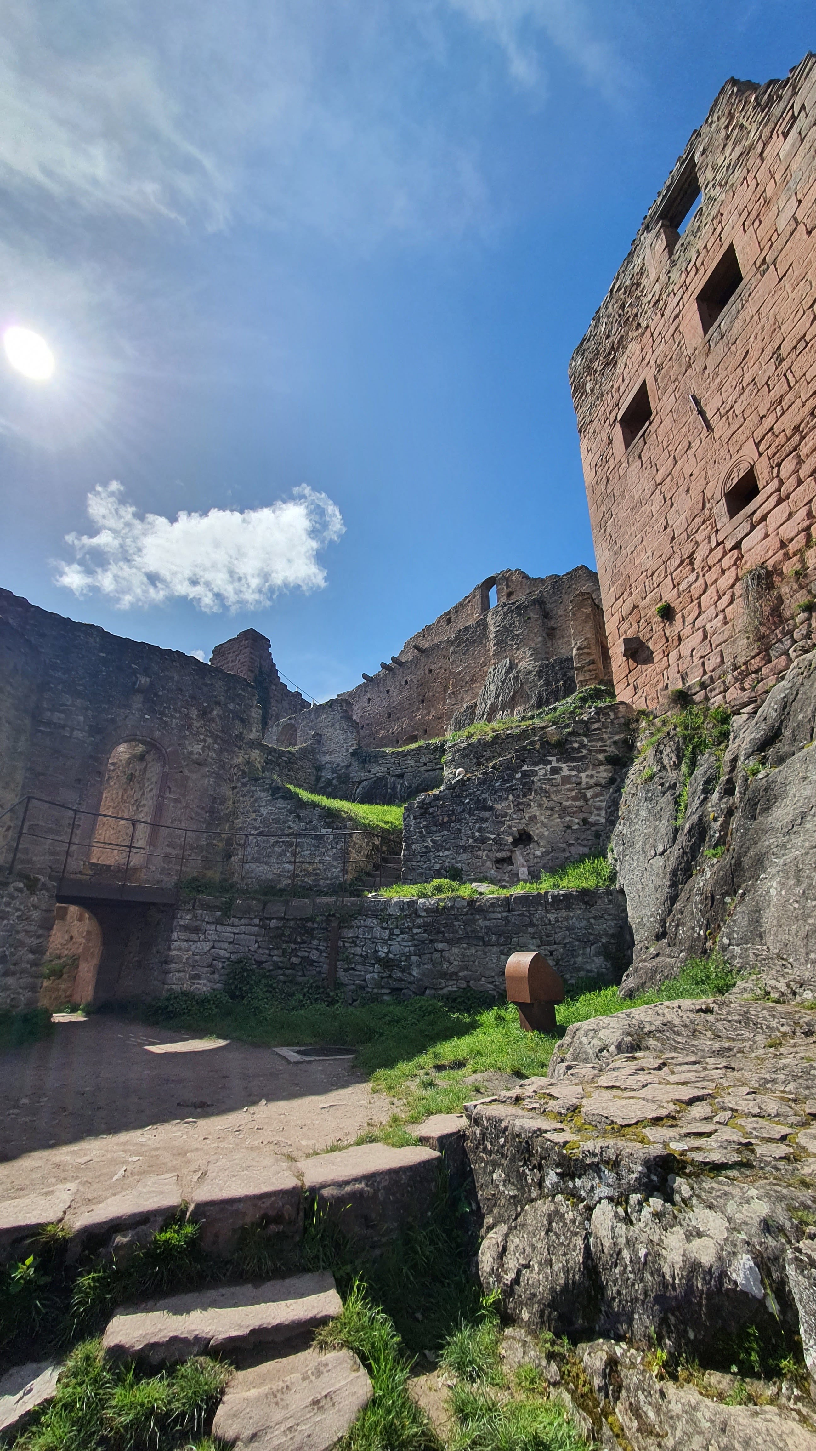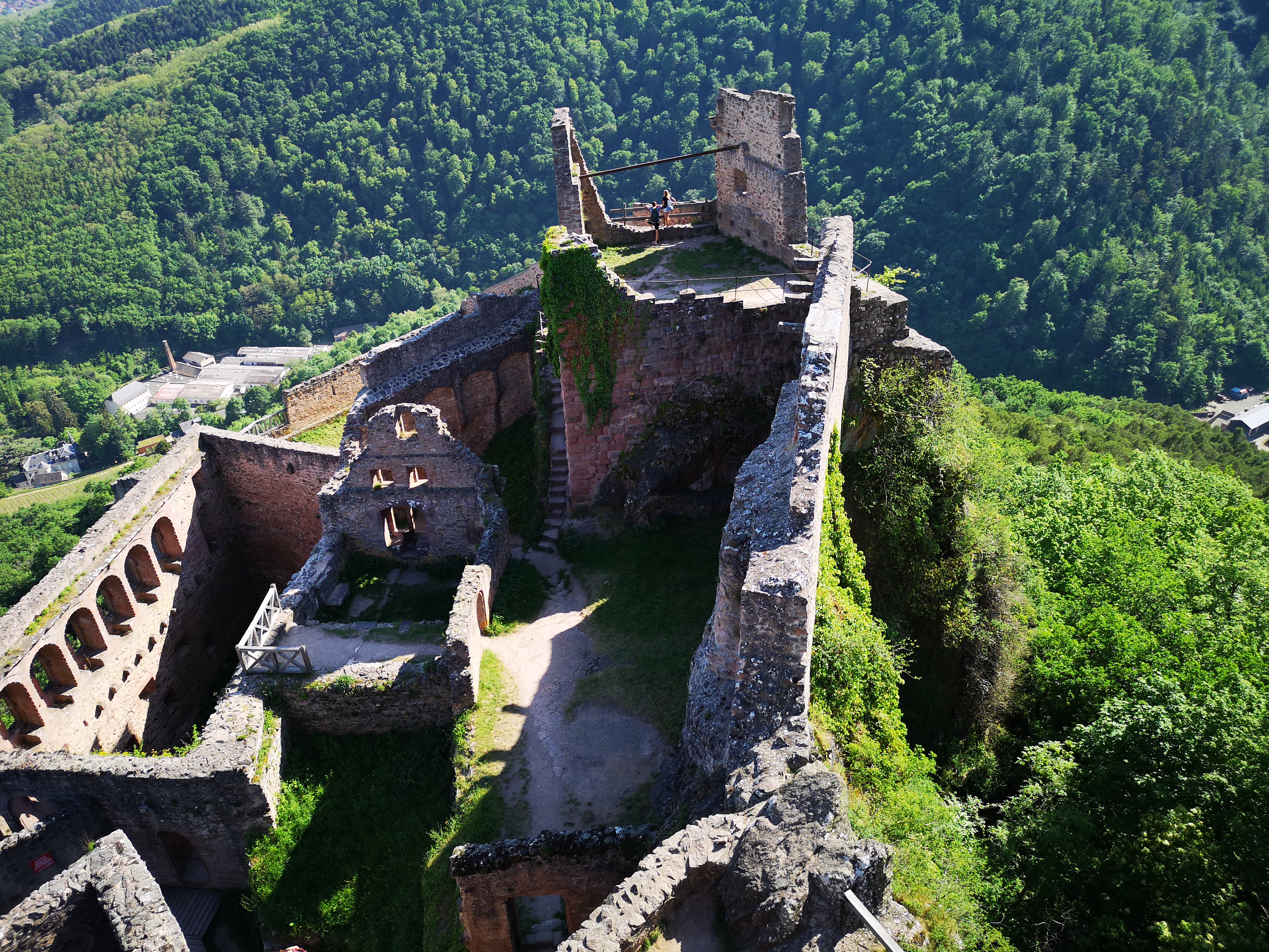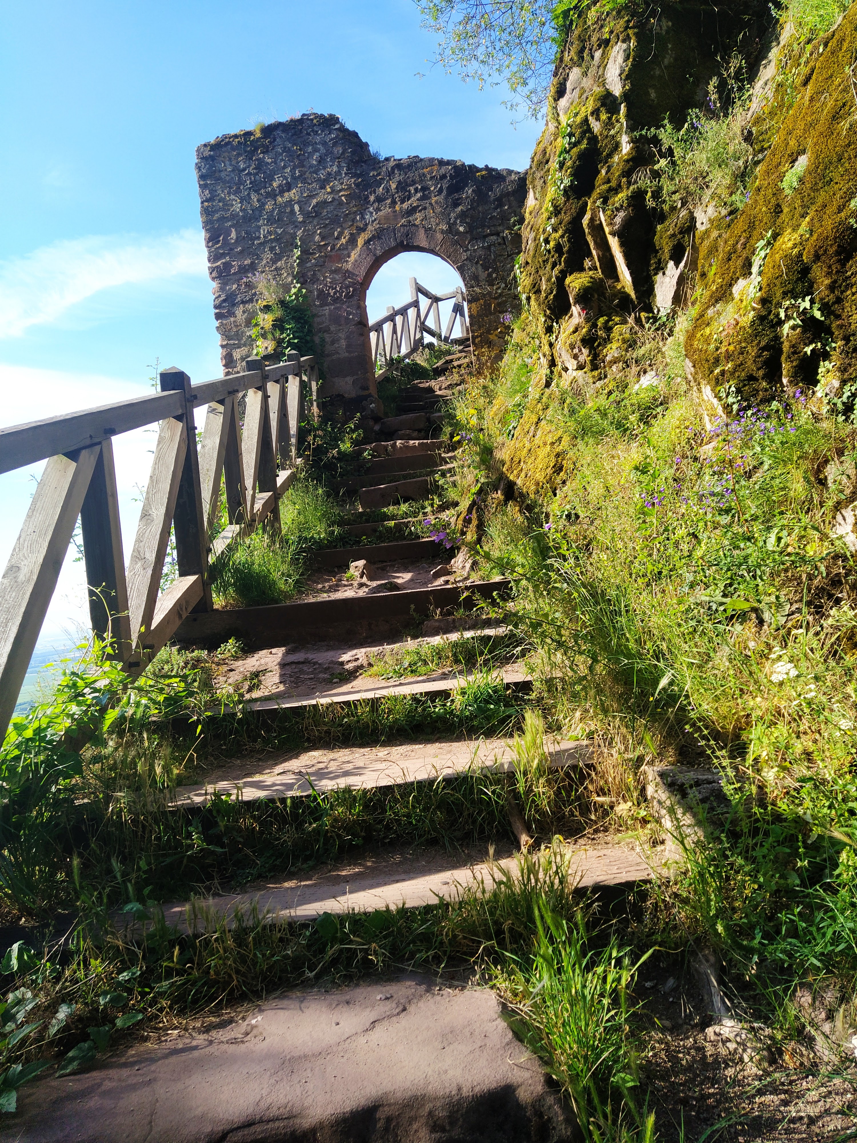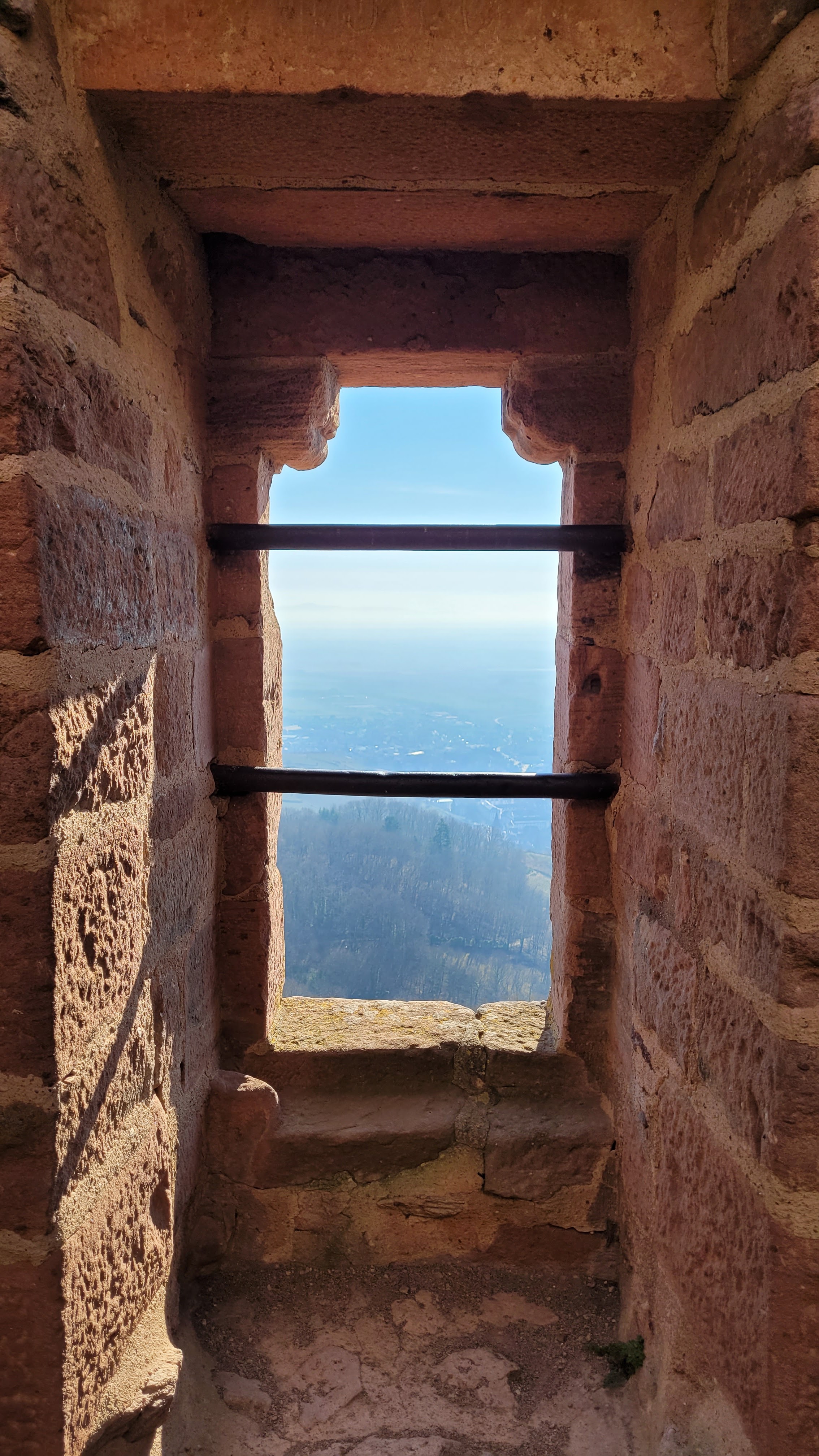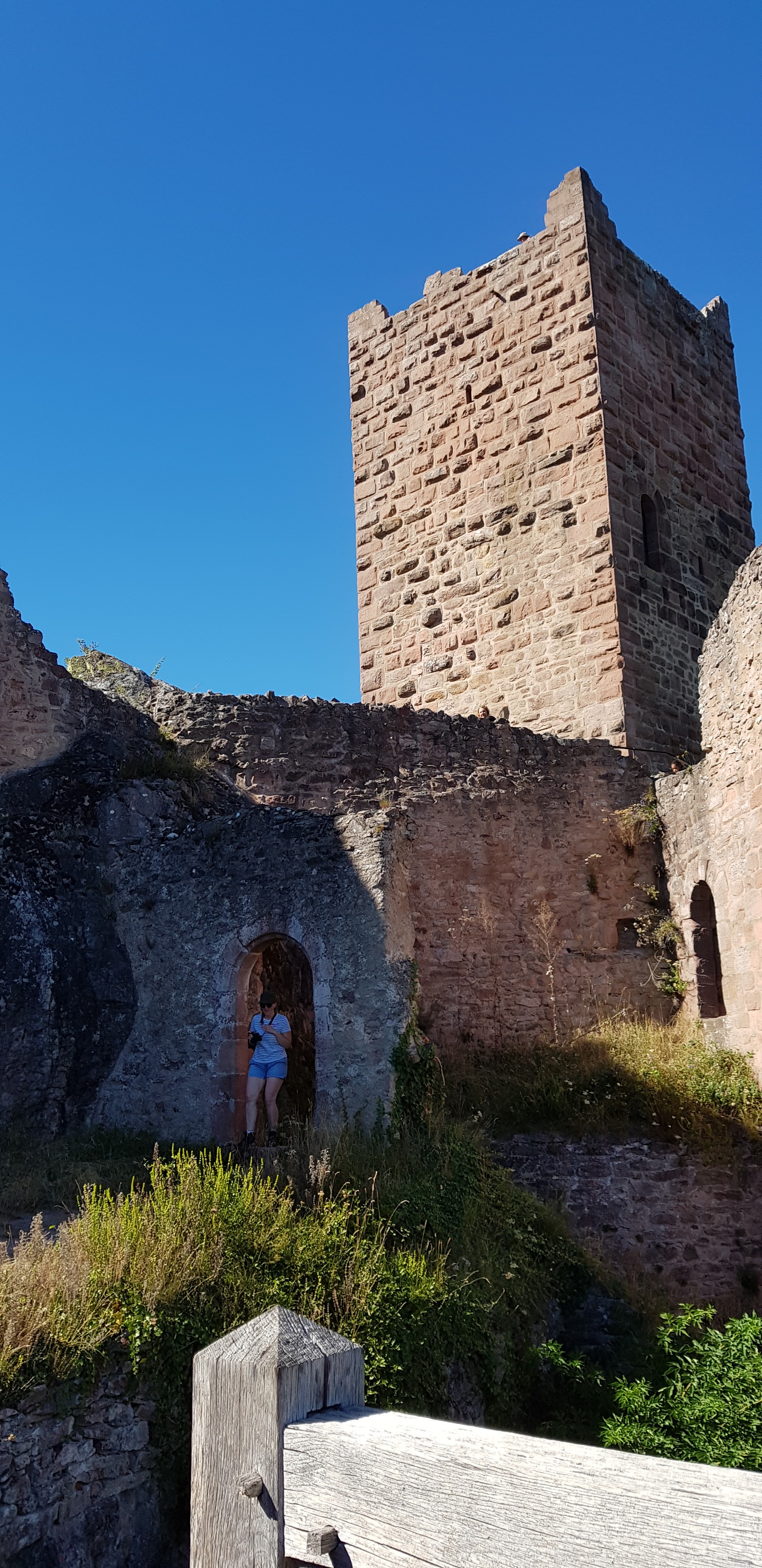 Ascension assez raide mais quel plaisir une fois le sommet atteind. Le toit offre une vue remarquable sur l'Alsace, où profiter du soleil, de la vue, et histoire de reprendre son souffle. Soyez cependant prudent si le sol est mouillé et prevoyer des chaussure qui ne sont pas lisse ! Il y a pas mal de pierre où il faut monter dessus et mieux vaut éviter le risque de glisser comme moi !