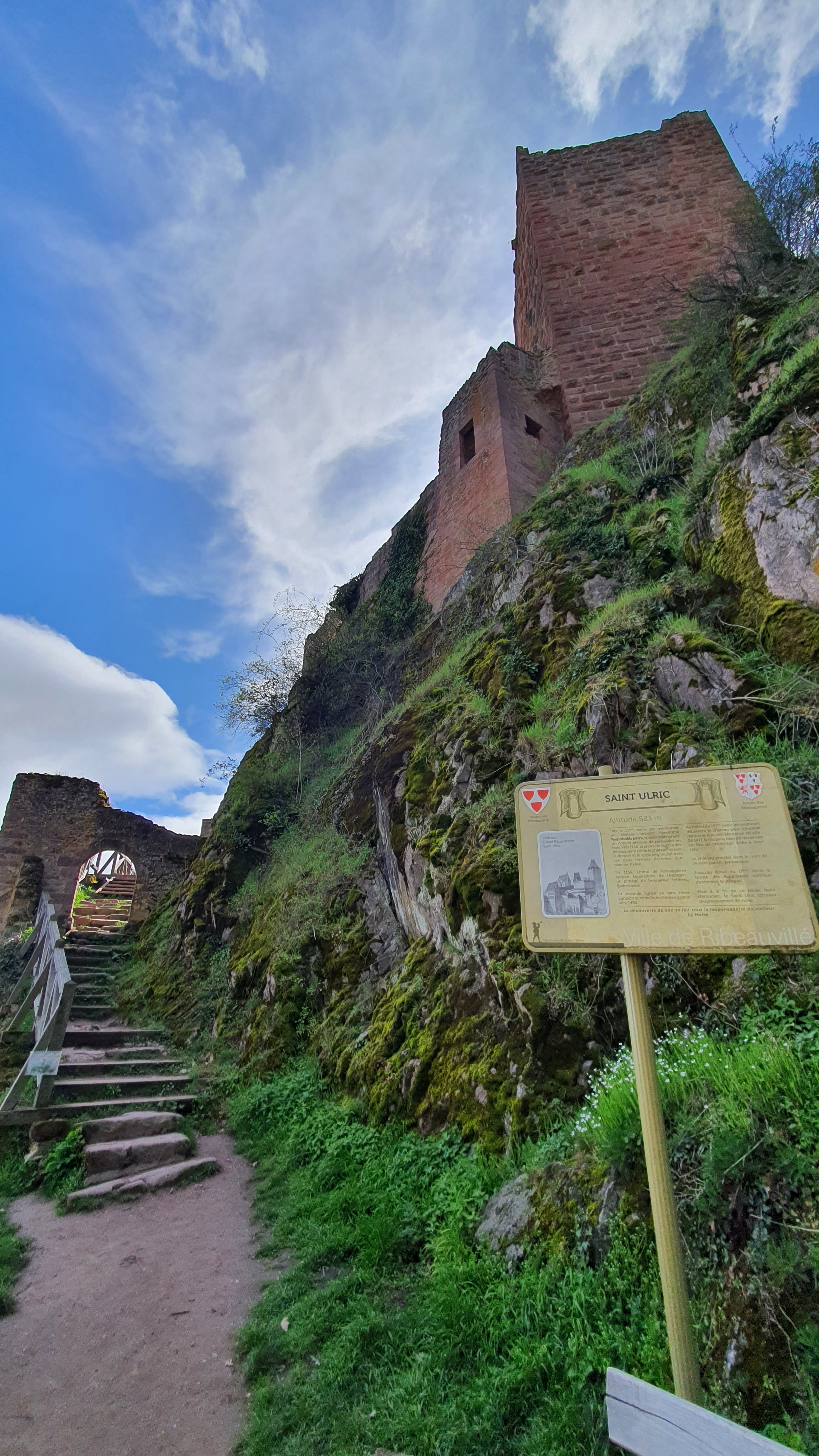 Le château parmi les châteaux ! Malgré une fréquentation importante de l’édifice en pleine saison estivale, cette endroit est tout simplement magique ! Facilement accessible (40 minutes de marche), ce lieu très bien conservé avec un panorama incroyable sur la région a son sommet ravira petit et grand ! 3 châteaux sont localisés dans cette zone Le château de Saint Ulrich est surprenant par sa taille, vraiment très grande et son état de conservation, même s’il s’agit d’une ruine, celle ci est très bien conservée Un vrai dédale d’escalier et de recoin pour se plonger pleinement dans ce lieu