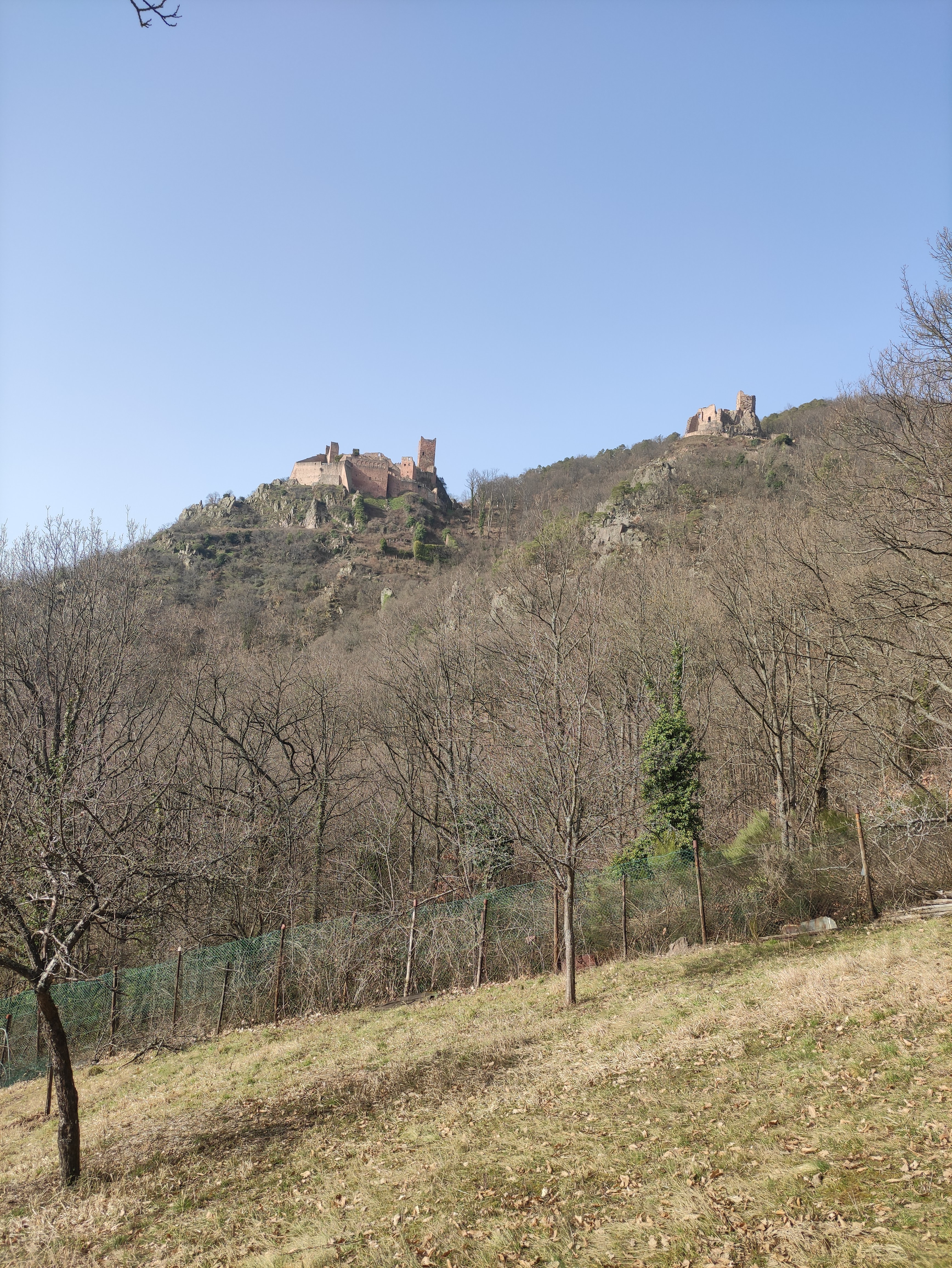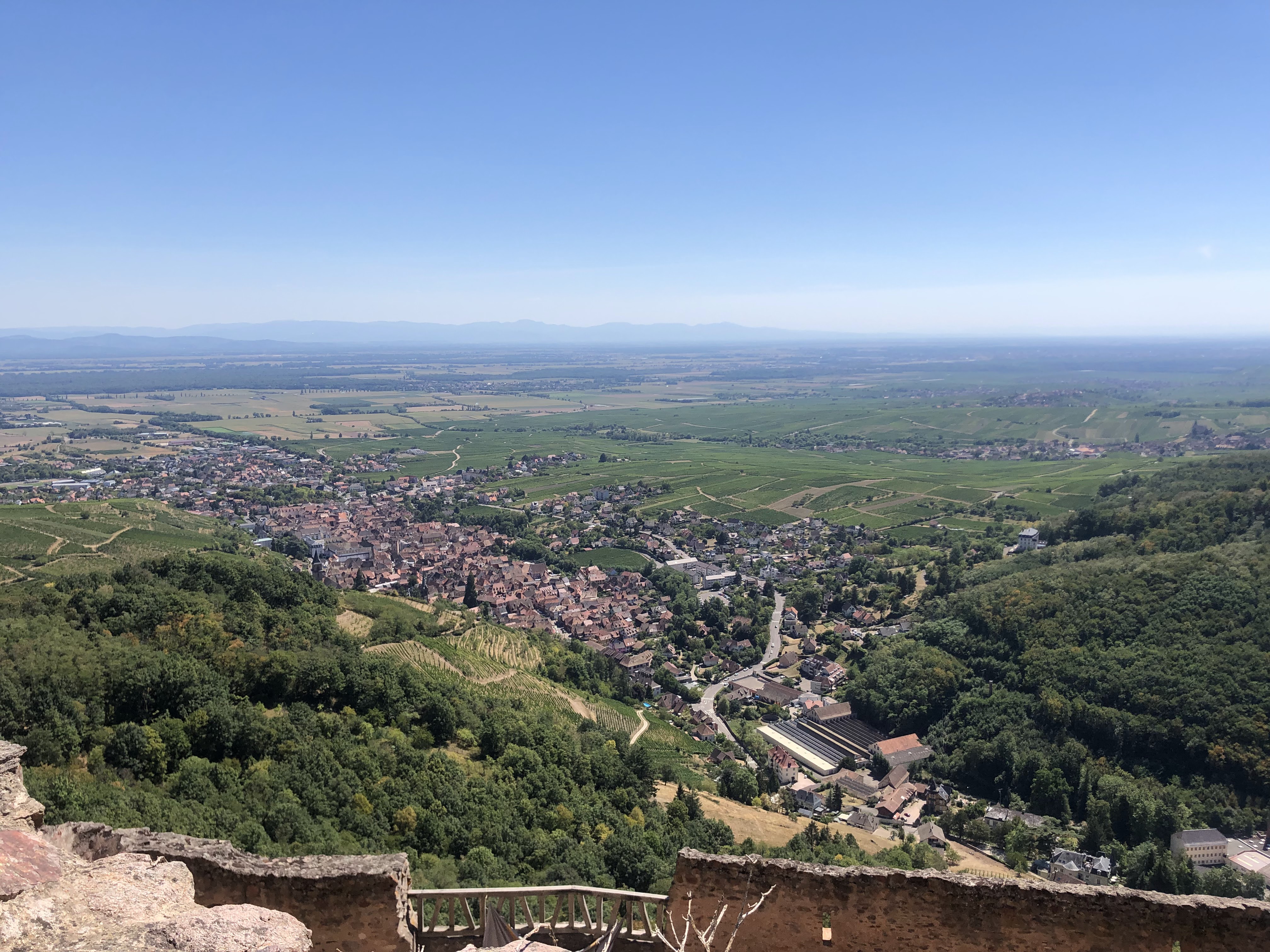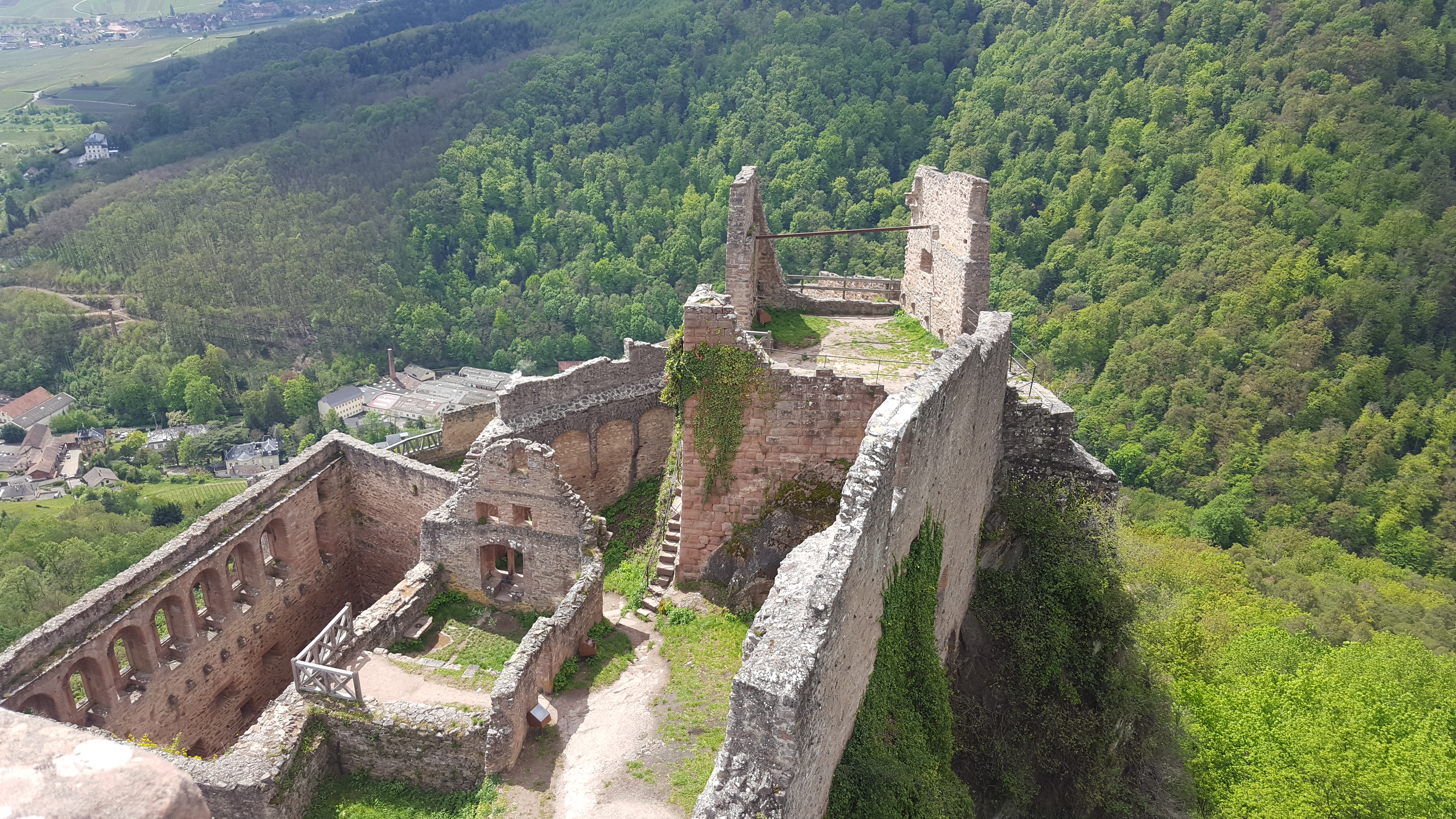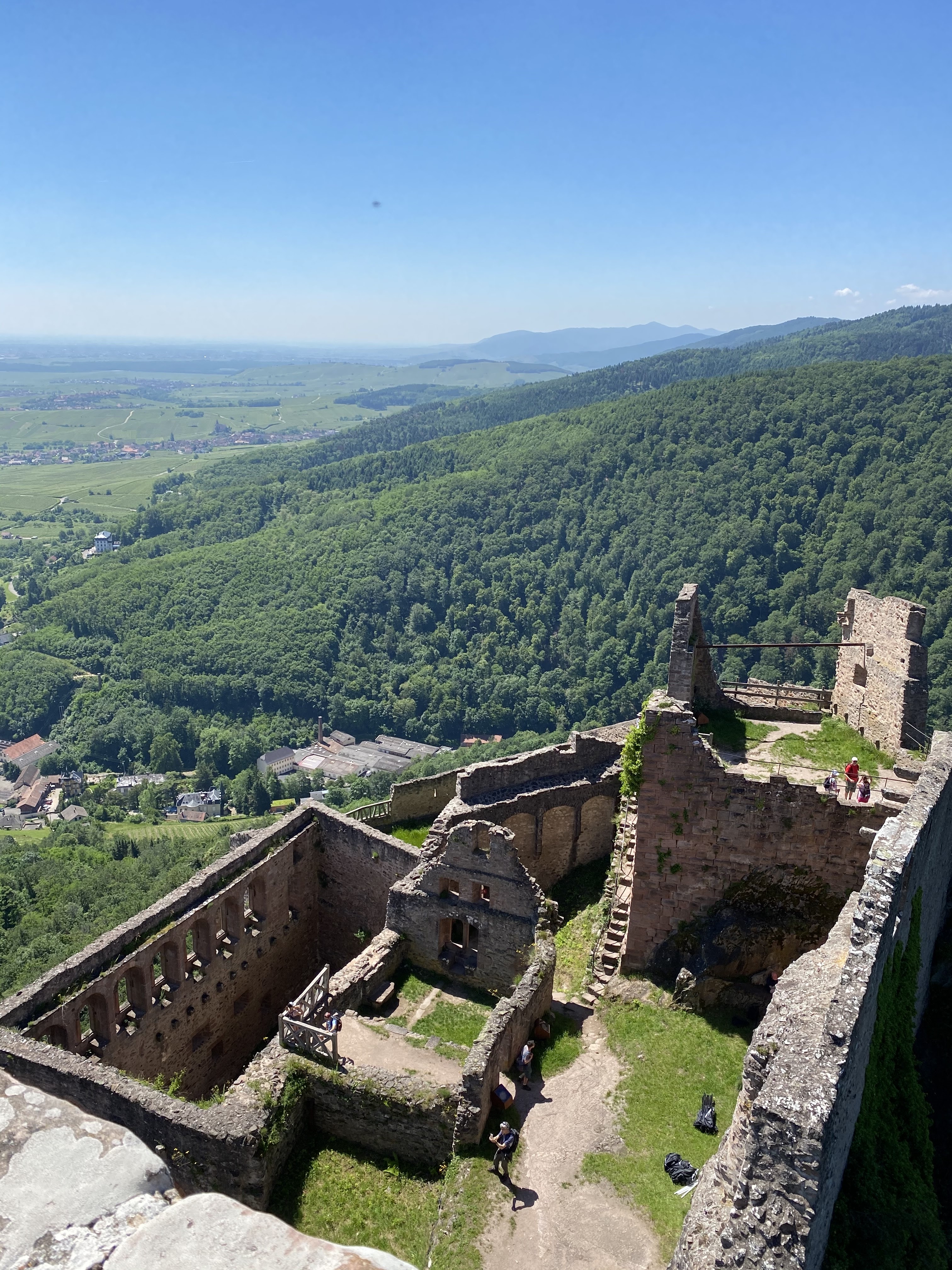La vue une fois arrivé en haut est magnifique. On aperçoit Ribeauvillé en tout petit et il y a un très beau point de vue sur l'autre château et la vallée. Le château est en ruine mais reste très joli.