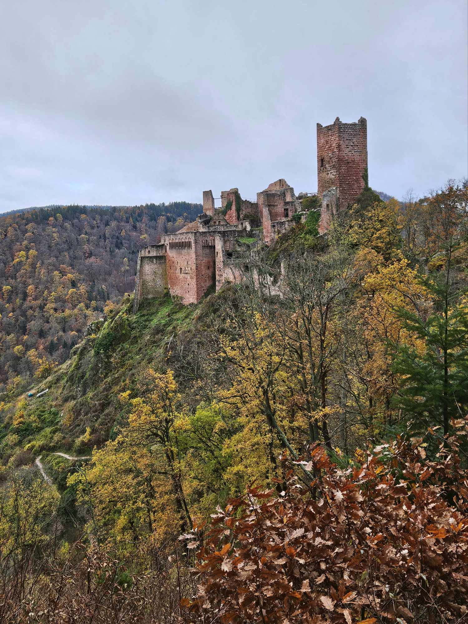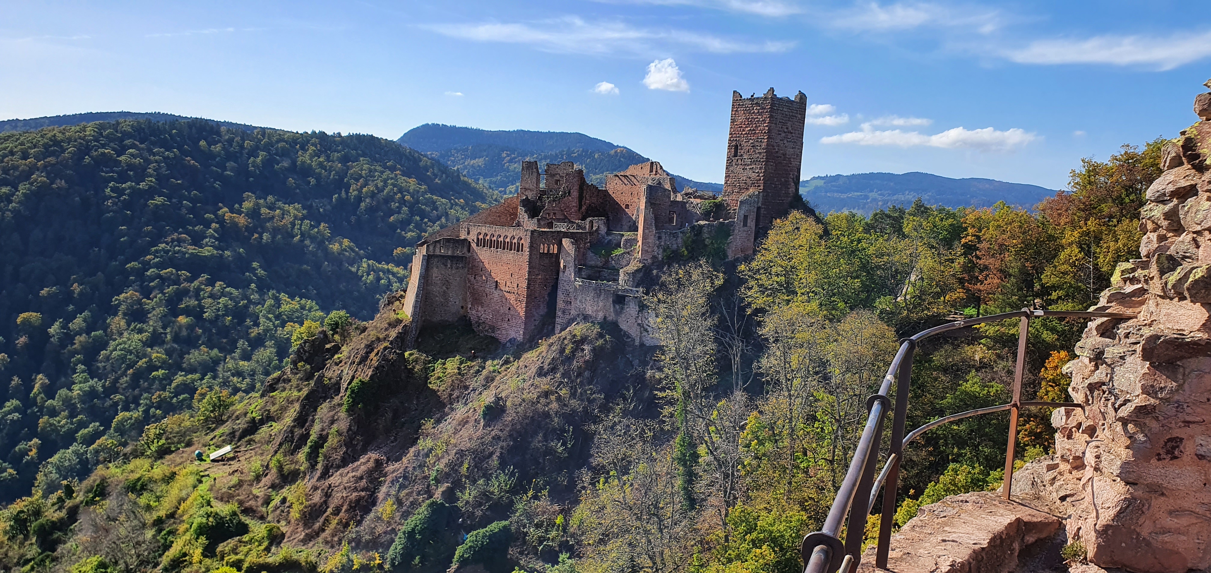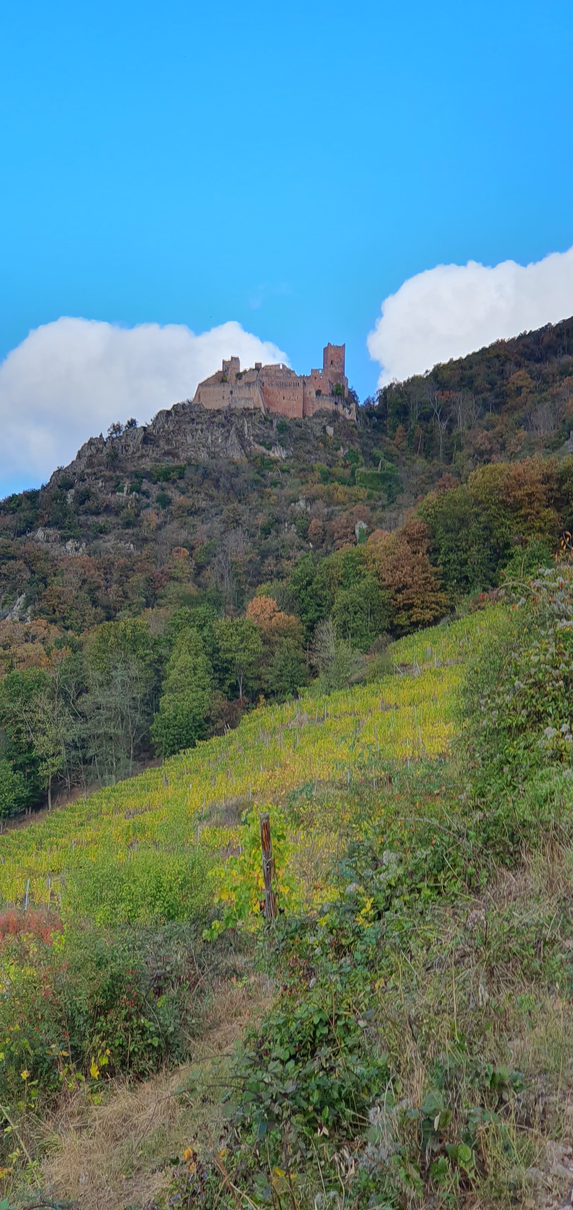 Jolie randonnée au château de St Ulrich en passant par le château du Girsberg sur les hauteurs de Ribeauvillé. Vue imprenable sur les vignes aux couleurs de l'automne.