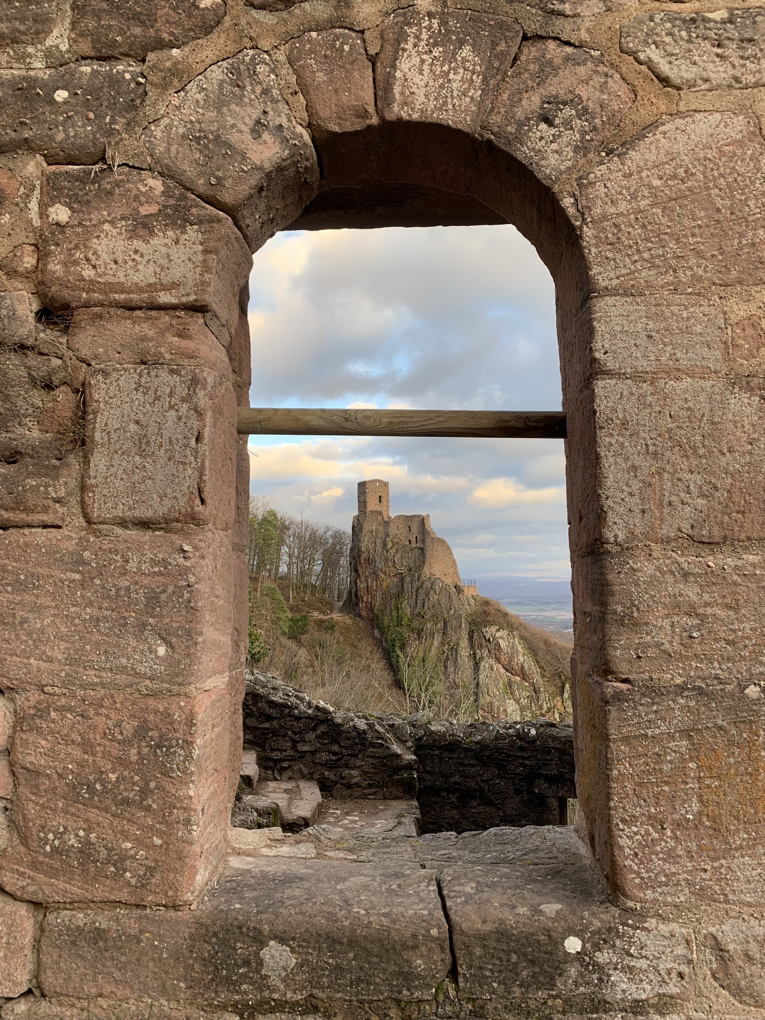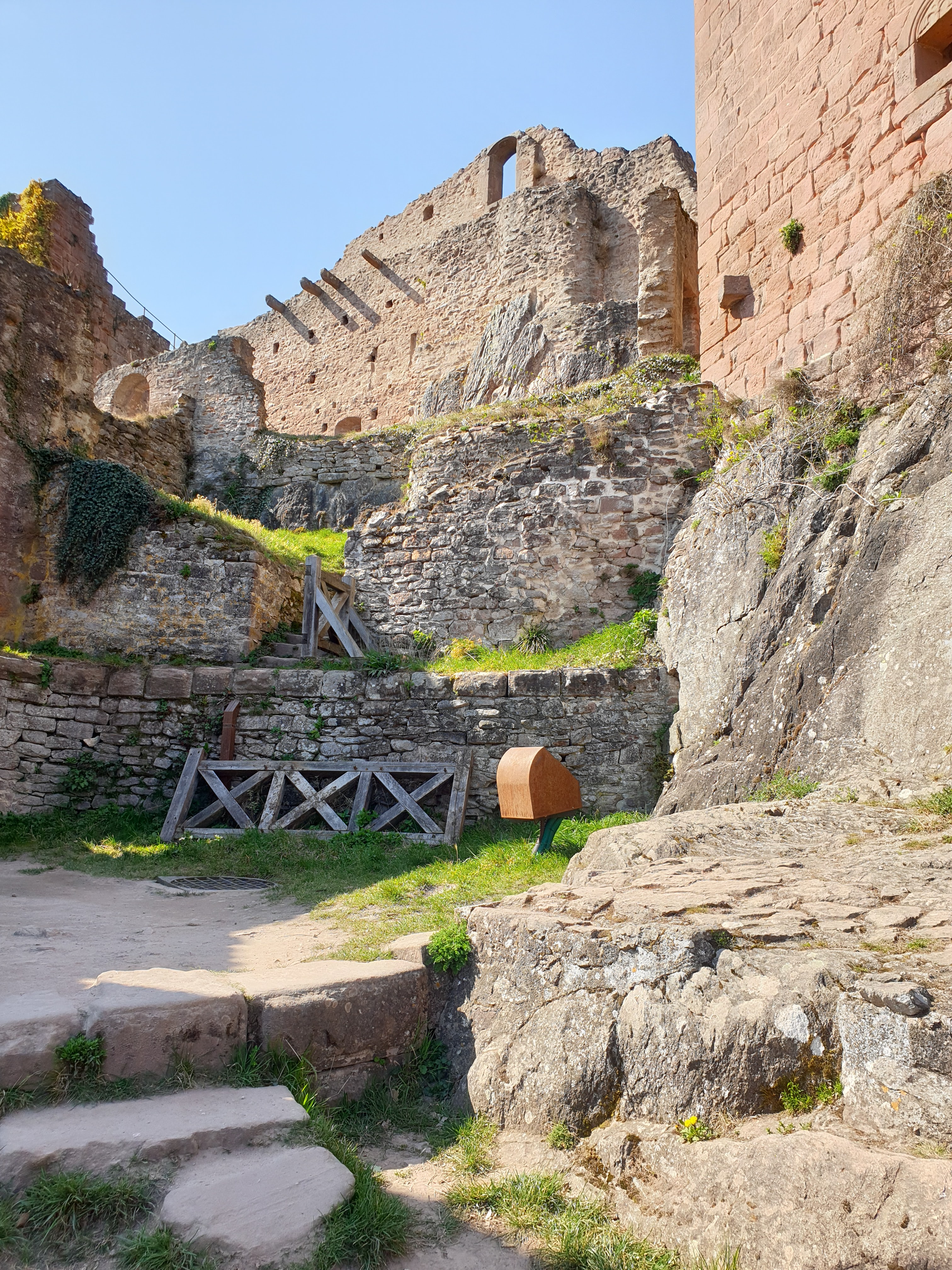 Superbe parcours des 3 châteaux à Ribeauvillé. Visite gratuite du château en ruine ,je n'ai pas eu le temps de faire les 2 autres. sécurisé et entretenue .Accès à la plus haute tour avec une très belle vue sur Ribeauvillé et les alentours .prévoir chaussures de rando ou marché .Ça monte .une petite partie est sur des roches .Attention les jours de pluies. Bonne visite à vous.