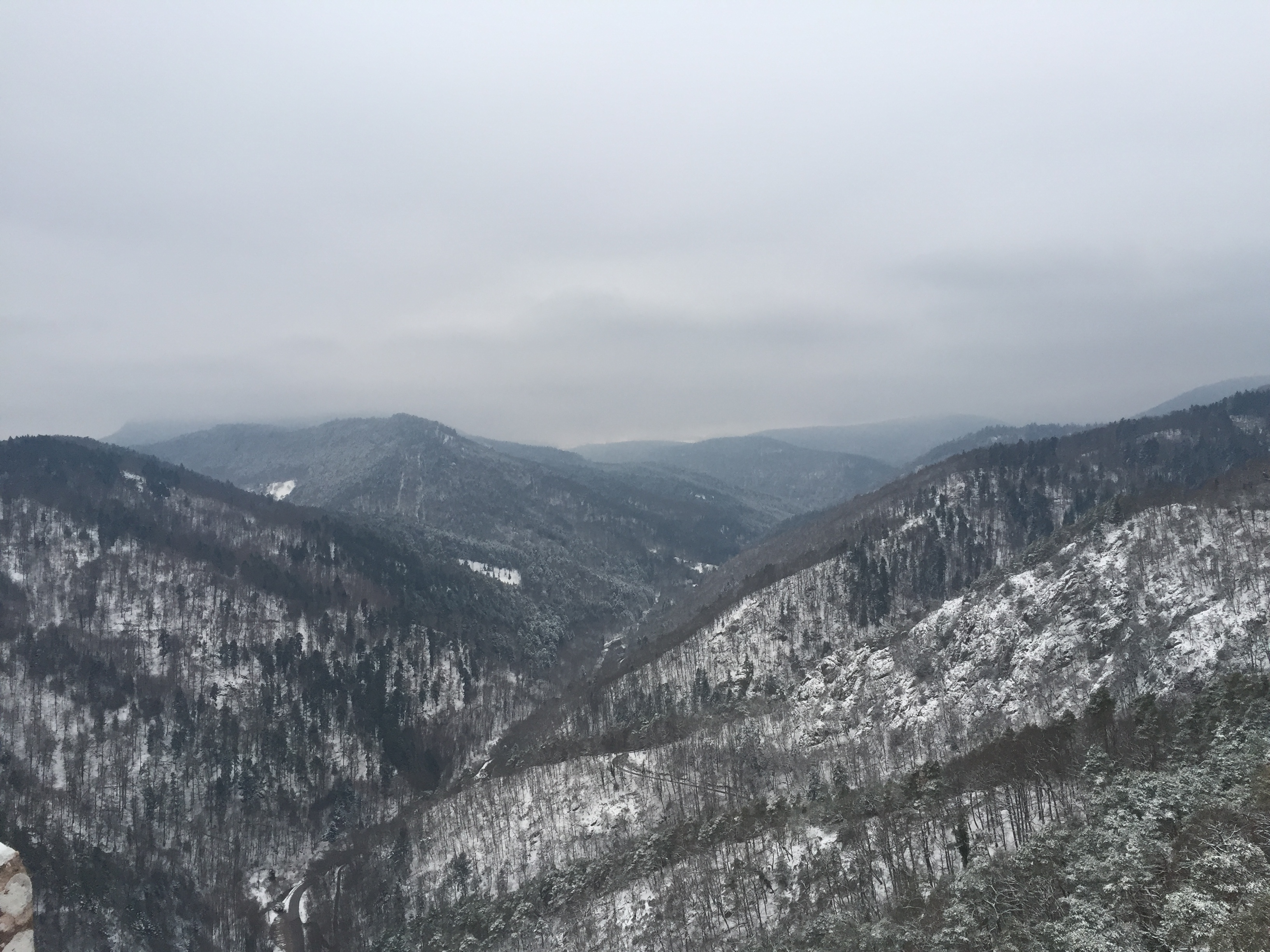 Ce château a été bâti au 11e siècle. C’est au 16e qu’il tombera a l’abandon et commencera à se ruiner. La vue était magnifique, en arrière plan de longues rangées de montagne. Attention, en cette saison il y a de la neige glacée sur les marches ! 👍🏻