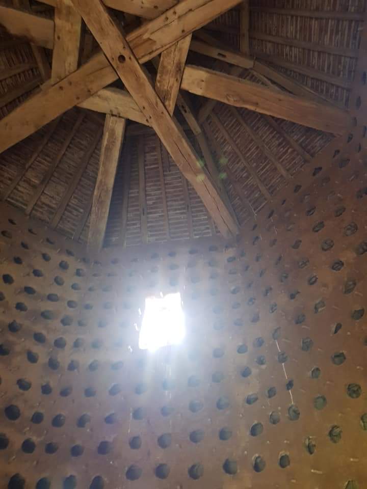 Visite du parc : de beaux arbres séculaires. Du pigeonnier : des cuves à eau au rez-de-chaussée. Une échelle pour accéder à l étage réservé aux pigeons. De la cave : restaurée constituée de 2 pièces . Sol en terre battue. Bien aérée avec 2 soupiraux. Du jardin potager en forme de cercle entouré d un mur avec une fontaine au centre et une mini serre sous verrière. Quelques légumes et des herbes aromatiques Visite intéressante dans un lieu paisible.