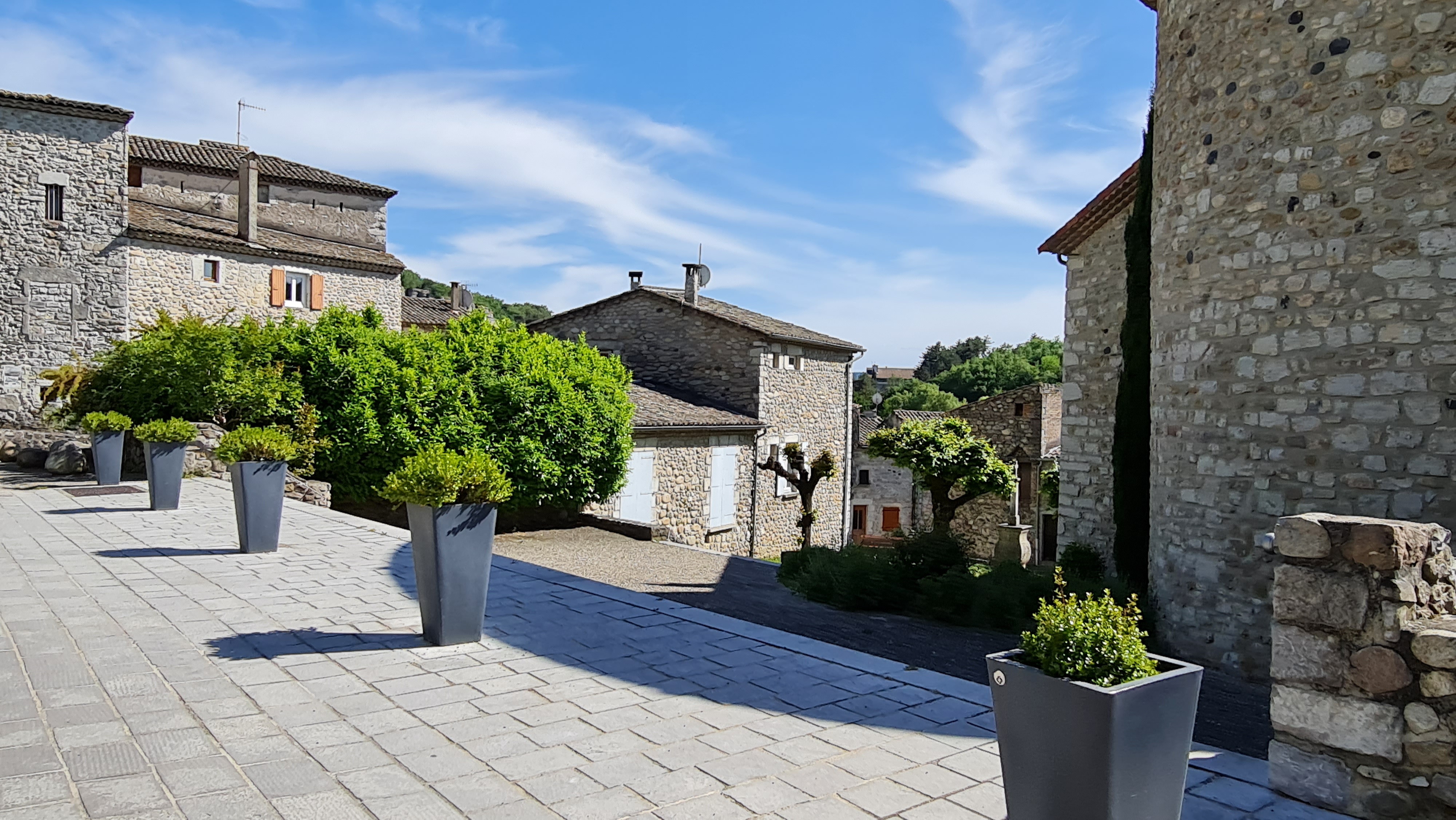 Magnifique village Après une belle montée vous arriverez vers une carrière de pierre. Il s'agit de la pierre bleue de Vogüé C'est une pierre calcaire provenant des carrières de Vogüé et de Ruoms Une balade sympa et culturel. Plus bas une petite chapelle puis le château. Magnifique château qui présente des vestiges de sa construction des XIIIe et XVe siècles. Mais c’est au XVIIe siècle qu’il revêt son aspect définitif. Puis le magnifique jardin suspendu dit jardin de la marquise Plus bas encore la rivière avec son cortège de canoë ! Une belle journée en famille