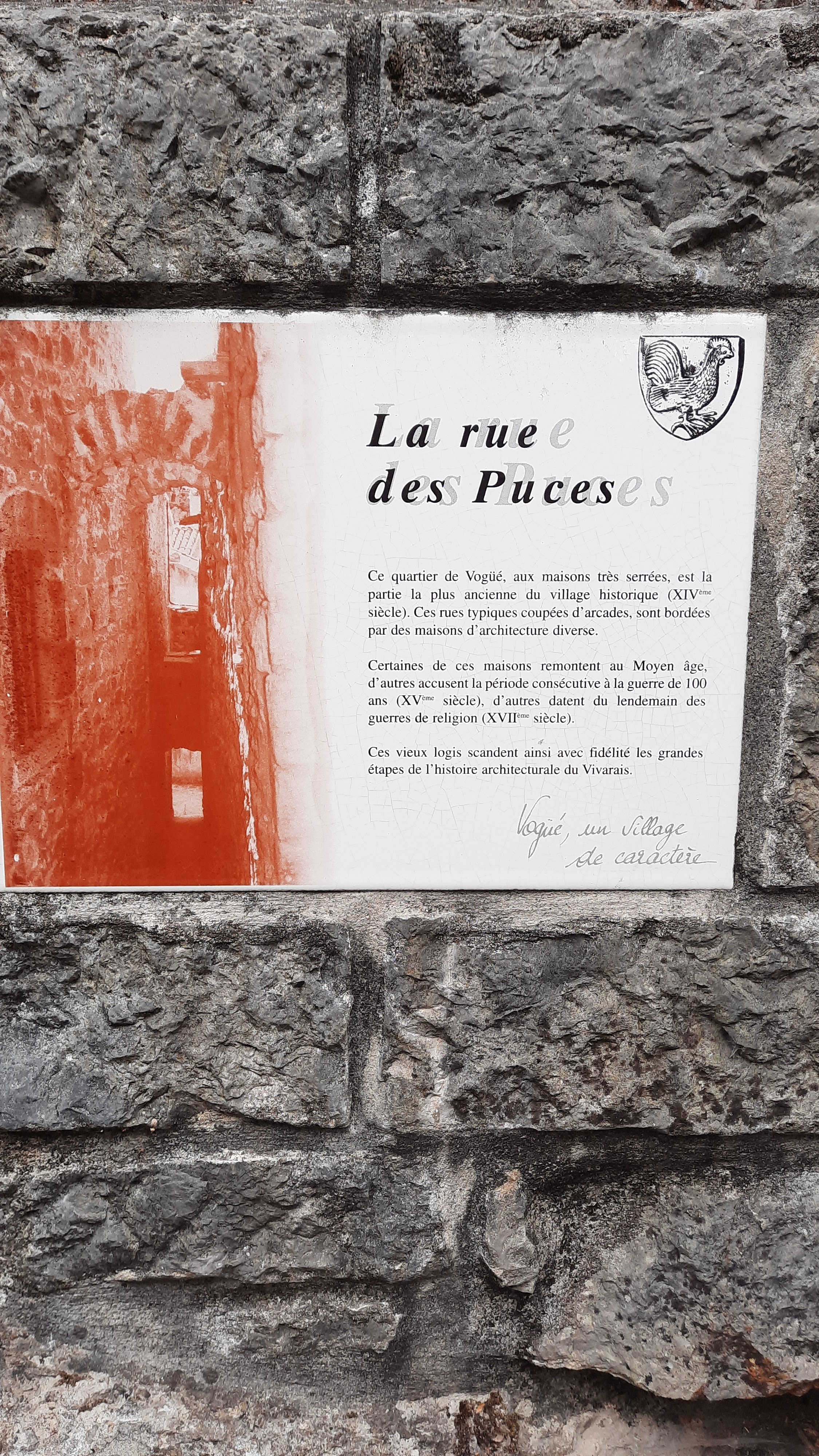 Vogüé, joli village de l' Ardèche, avec ses ruelles en pente avec super panorama en haut de la chapelle sur la vallée et le village.