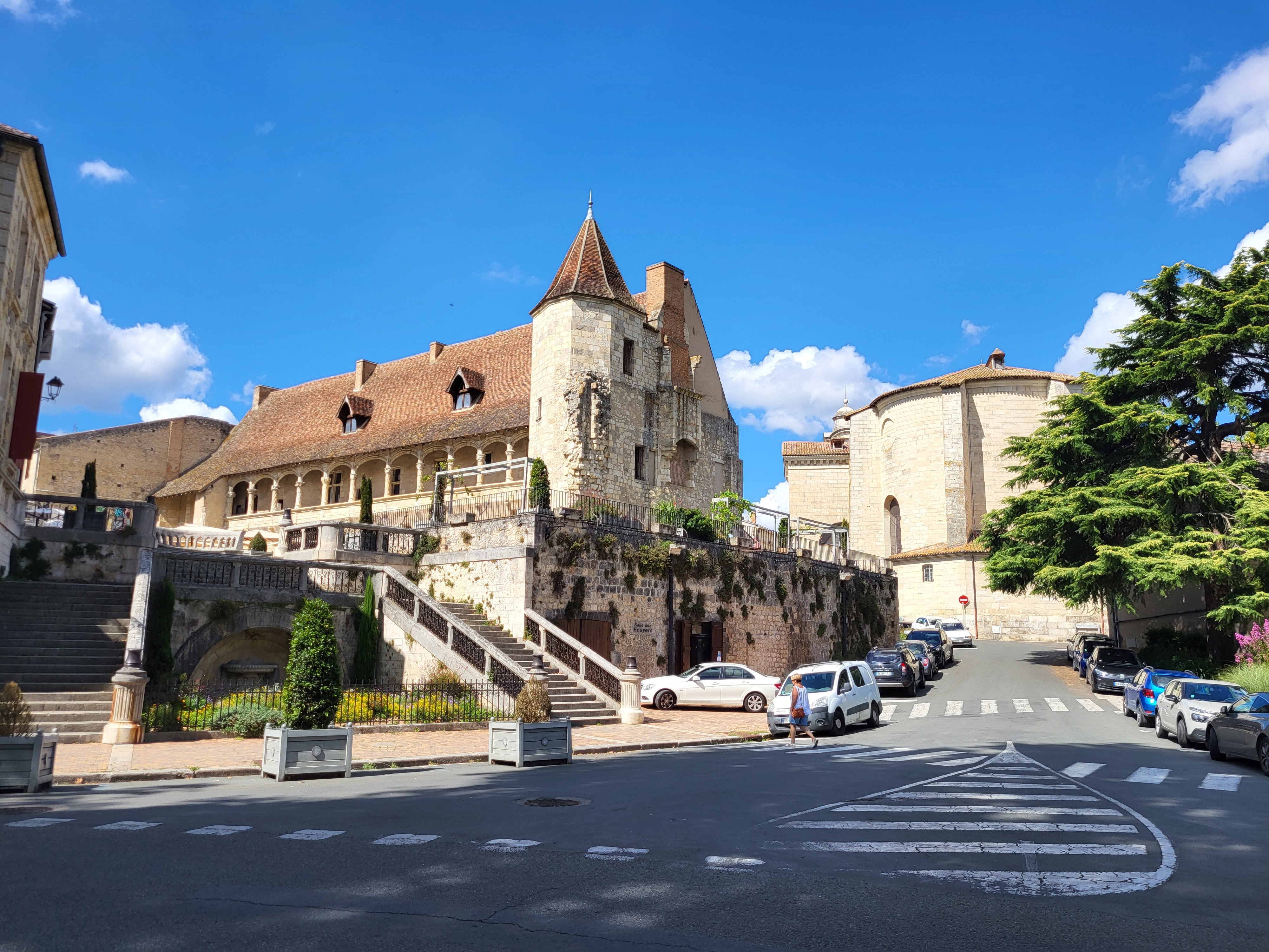 Juste vu de l'extérieur. C'est une très jolie architecture. C'est souvent qu'il n'y ait plus aucun meuble dans ces châteaux. Nerac est traversé par la Baïse. Il y a de jolies demeures aussi