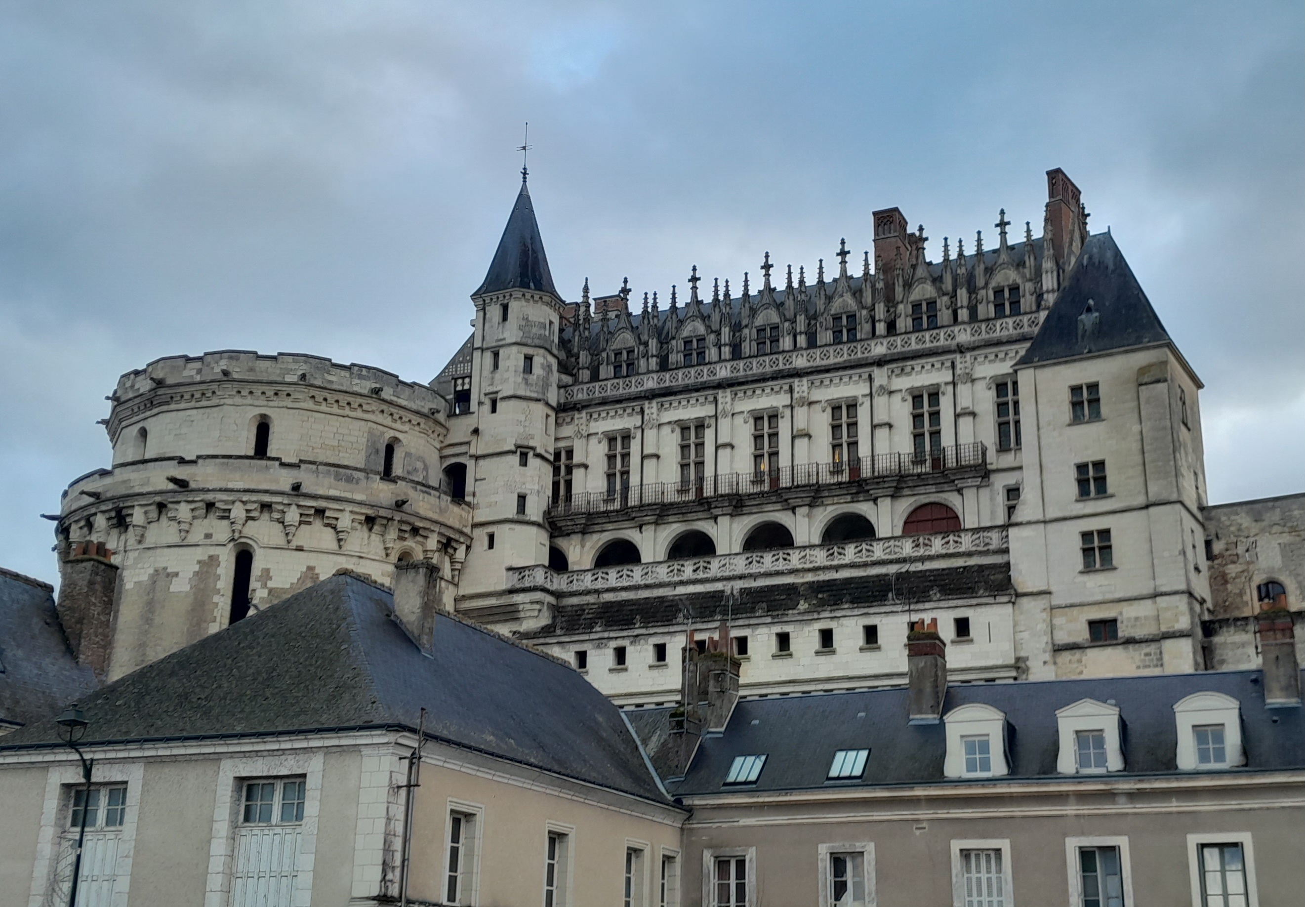 Visite du château royal d'Amboise. Bel édifice perché sur son promontoire surplombant la Loire. Belle visite avec ces deux tours permettant d'accéder à cheval de la ville basse jusqu'au château.